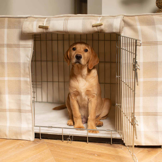 Dog Crate with Cosy & Calming Puppy Crate Bed in Balmoral Natural Tweed by Lords & Labradors