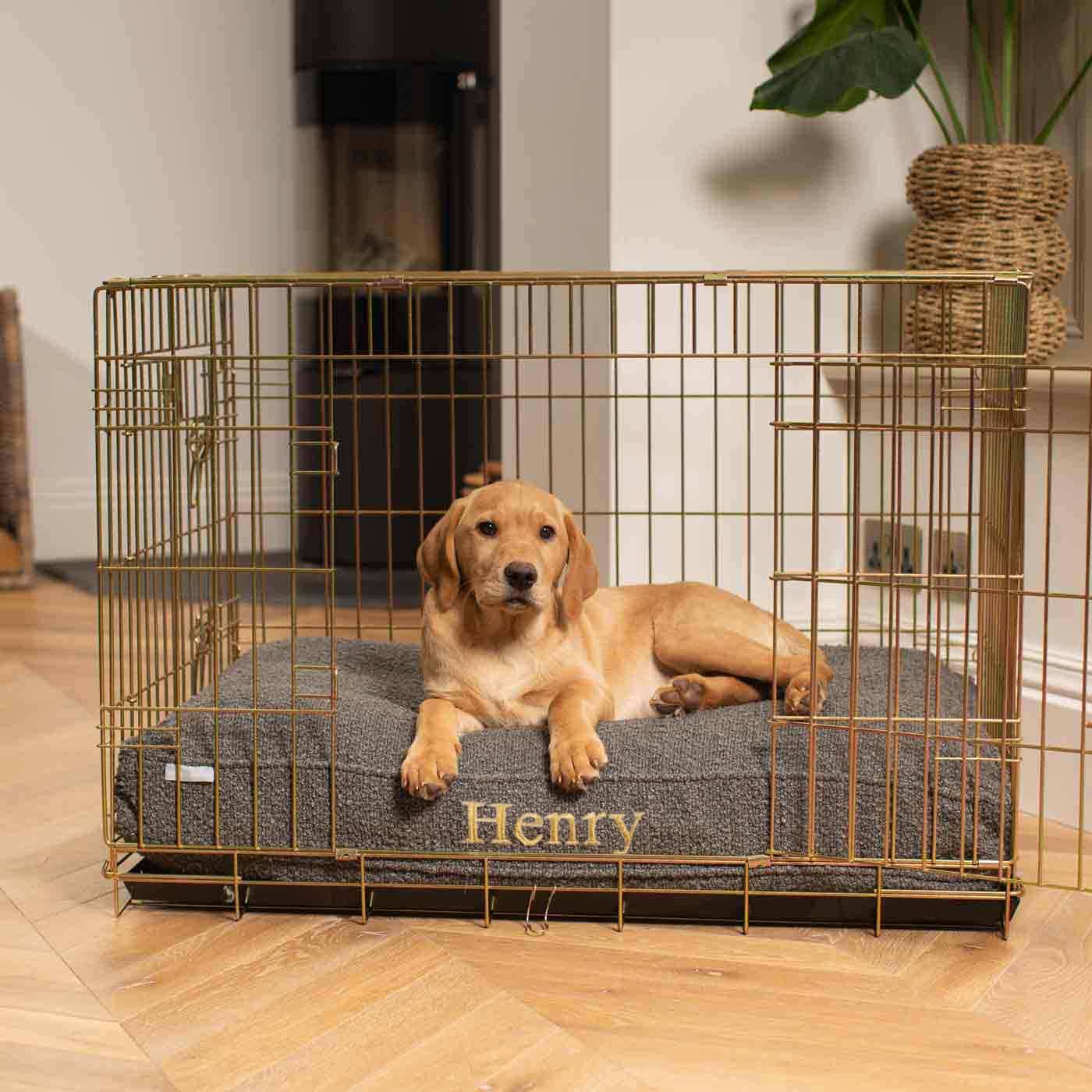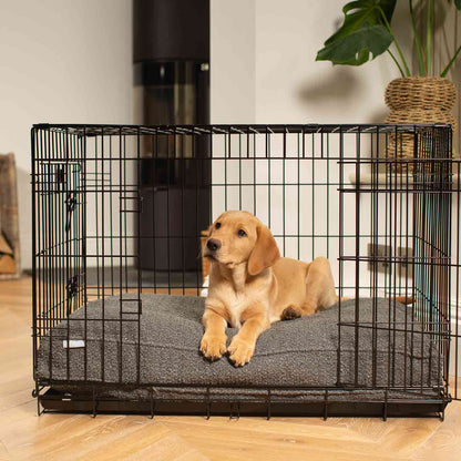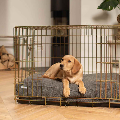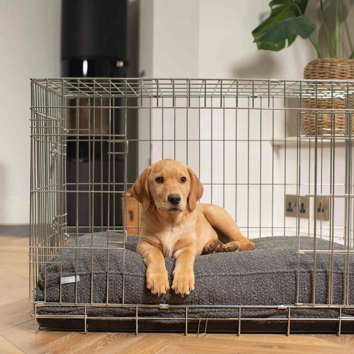 Our crate cushions are lovingly handmade in our workshop here in the UK and come in sizes from Small 24” up to XXL 48”. They fit most standard dog crates including our Lords & Labradors and Ellie Bo crates. We also make matching crate covers and bumpers so you can create the cosiest doggie den for your pup.