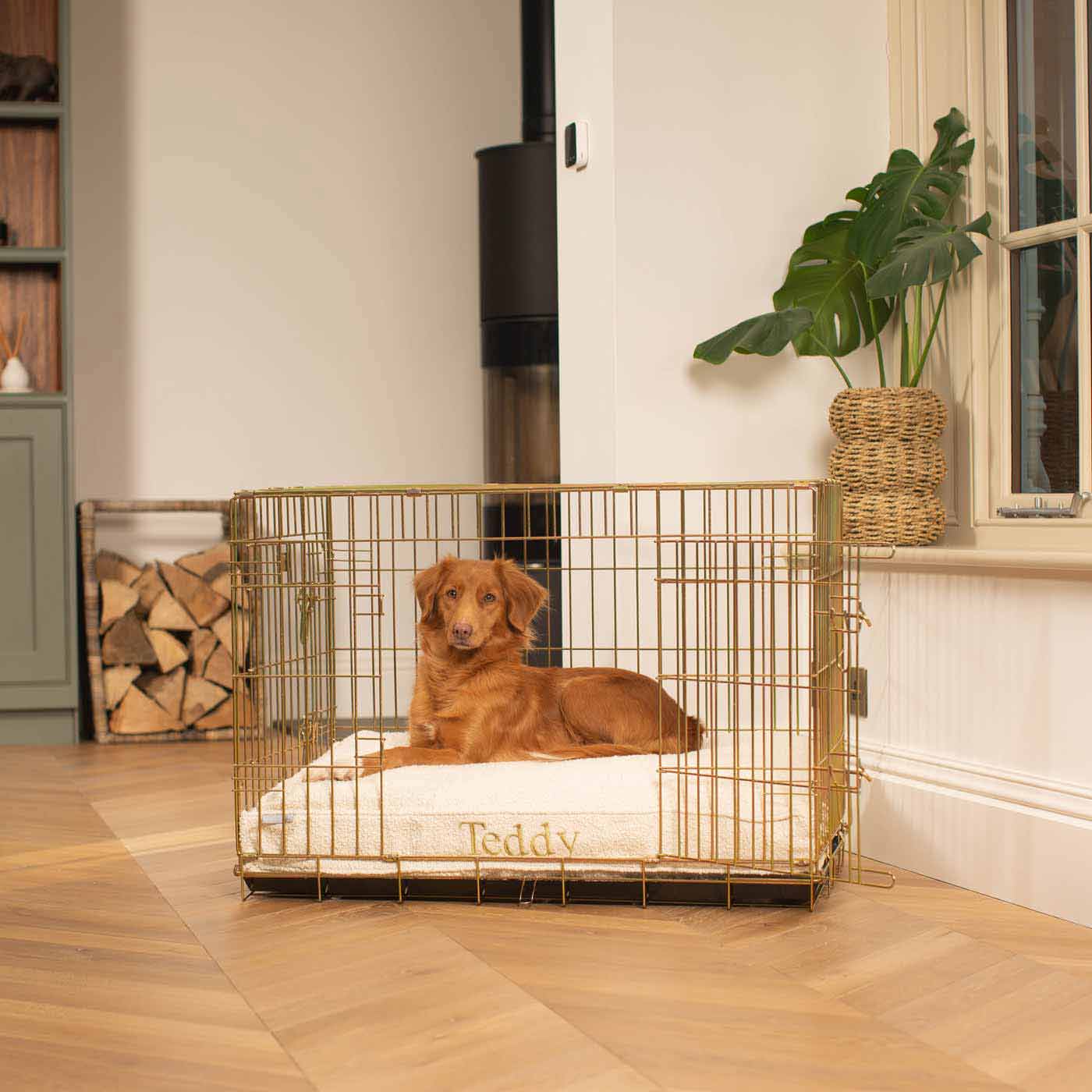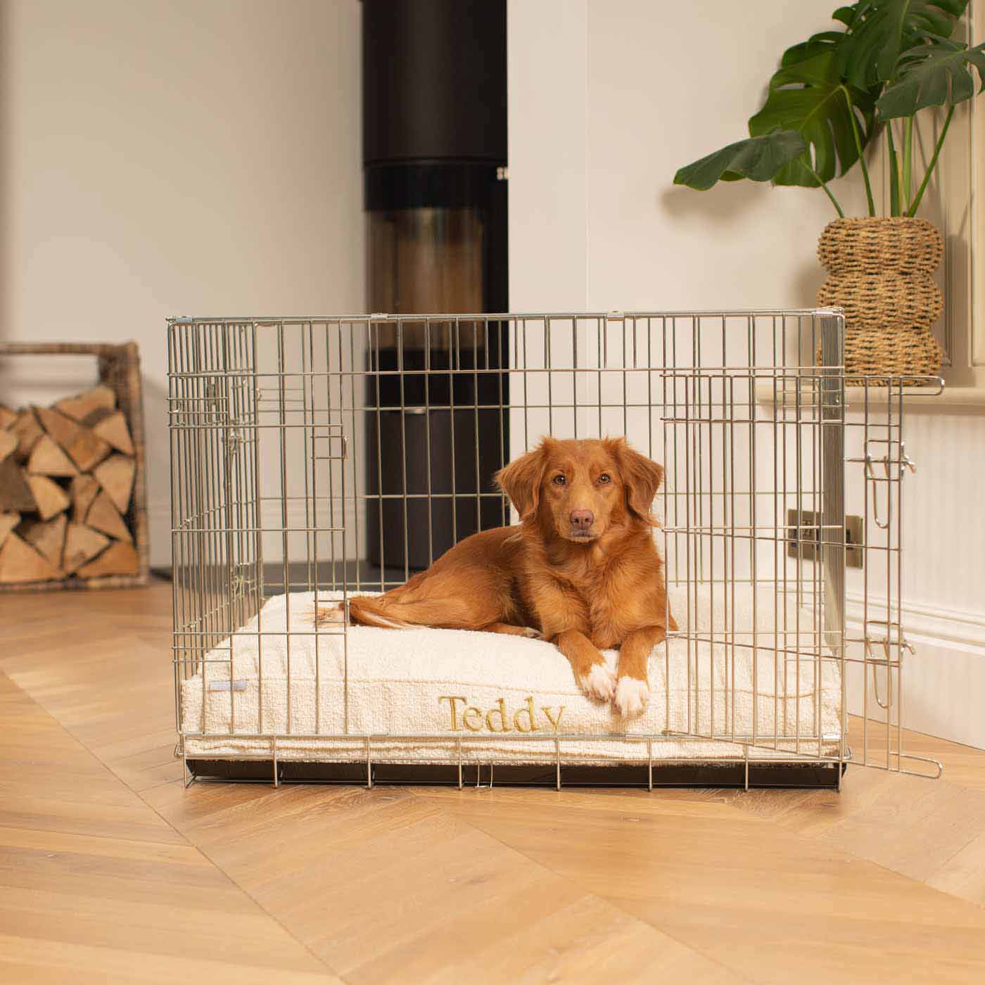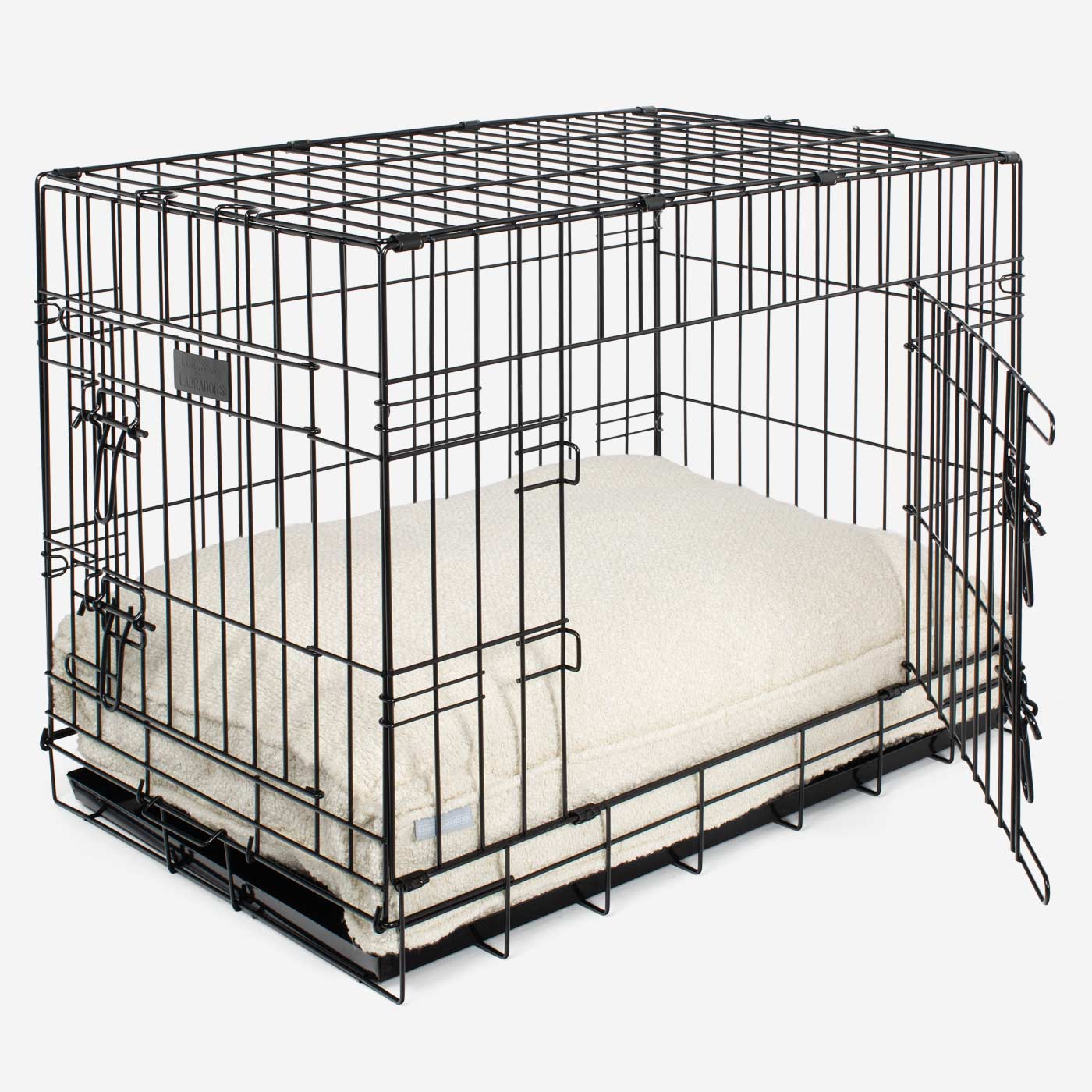 Our crate cushions are lovingly handmade in our workshop here in the UK and come in sizes from Small 24” up to XXL 48”. They fit most standard dog crates including our Lords & Labradors and Ellie Bo crates. We also make matching crate covers and bumpers so you can create the cosiest doggie den for your pup.
