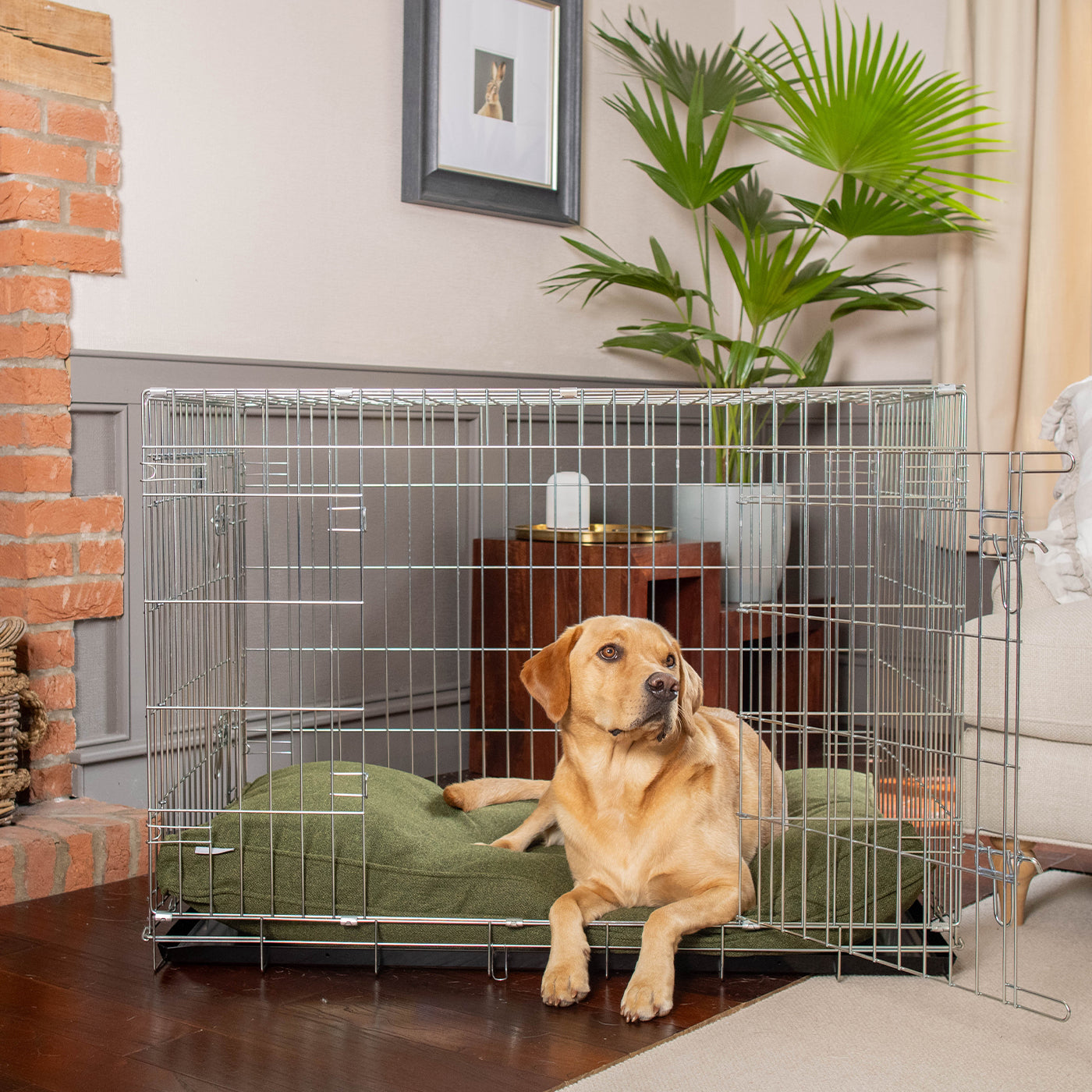 Experience premium comfort with the Dog Cushion in Moss Orkney Tweed by Lords & Labradors. Crafted from durable herringbone tweed in a rich dark moss green, this cushion offers a stylish and cosy spot for your dog to relax. Its versatile design suits both crates and standalone use, making it perfect for winding down after walks, baths, or play. Available in four sizes and three elegant colours, you can also personalise it to add a unique touch to your pet’s favourite resting place.