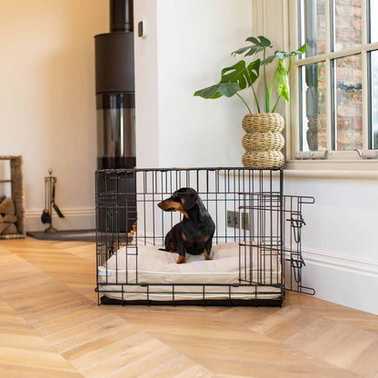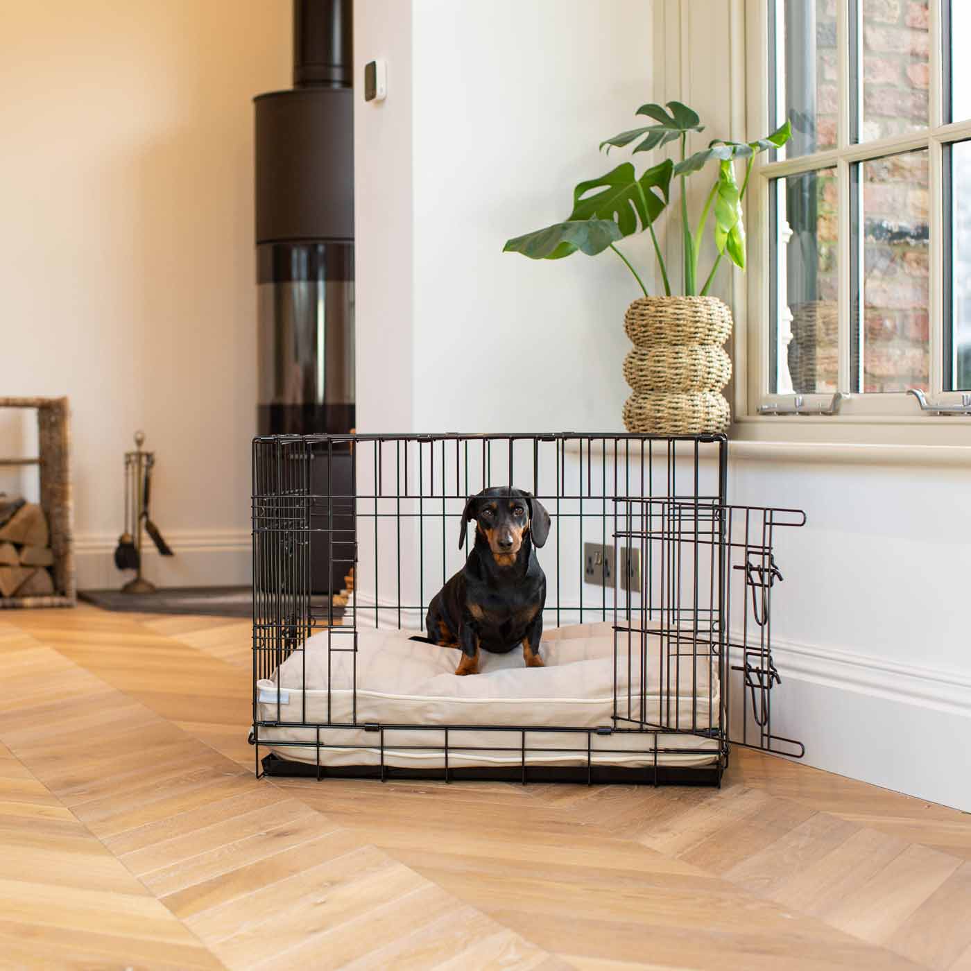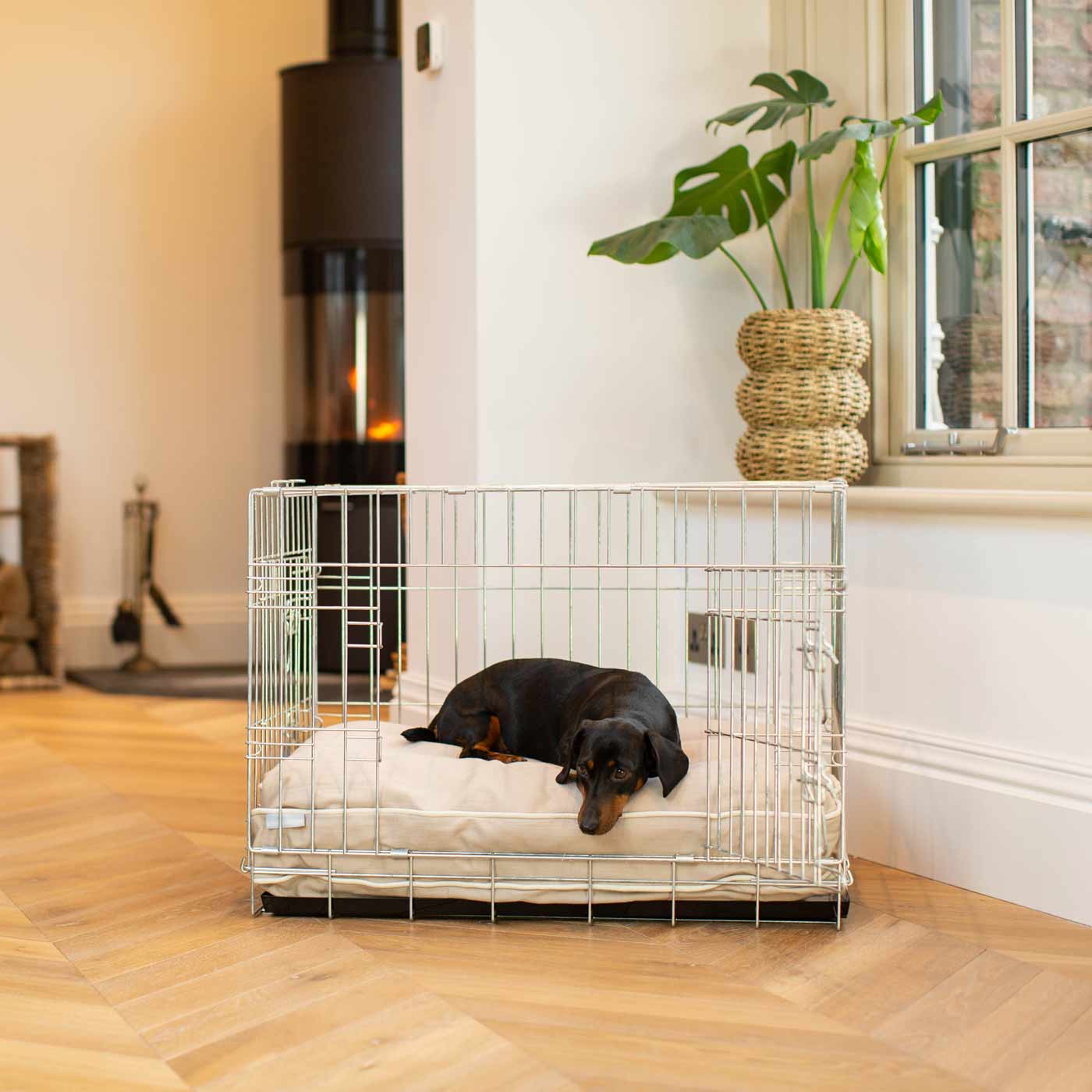The cushion comes in 5 standard sizes and can be used inside your dog crate as a crate cushion or as a stand-alone luxury dog bed. It will make the interior of your dog’s crate so cosy and inviting. We have thought about all the practicalities we need from a dog bed and have made the cushions waterproof too. Inside the zip-off cover is a removable waterproof liner, so if your pup has an accident it won’t ruin the filling of the cushion. The inner is deeply filled with hollow fibre filling and is pocketed so the filling won’t bunch in a corner at one end. The cover is made from 100% cotton and is machine washable on a delicate cycle. Just air dry without too much heat and the cover will be as good as new!