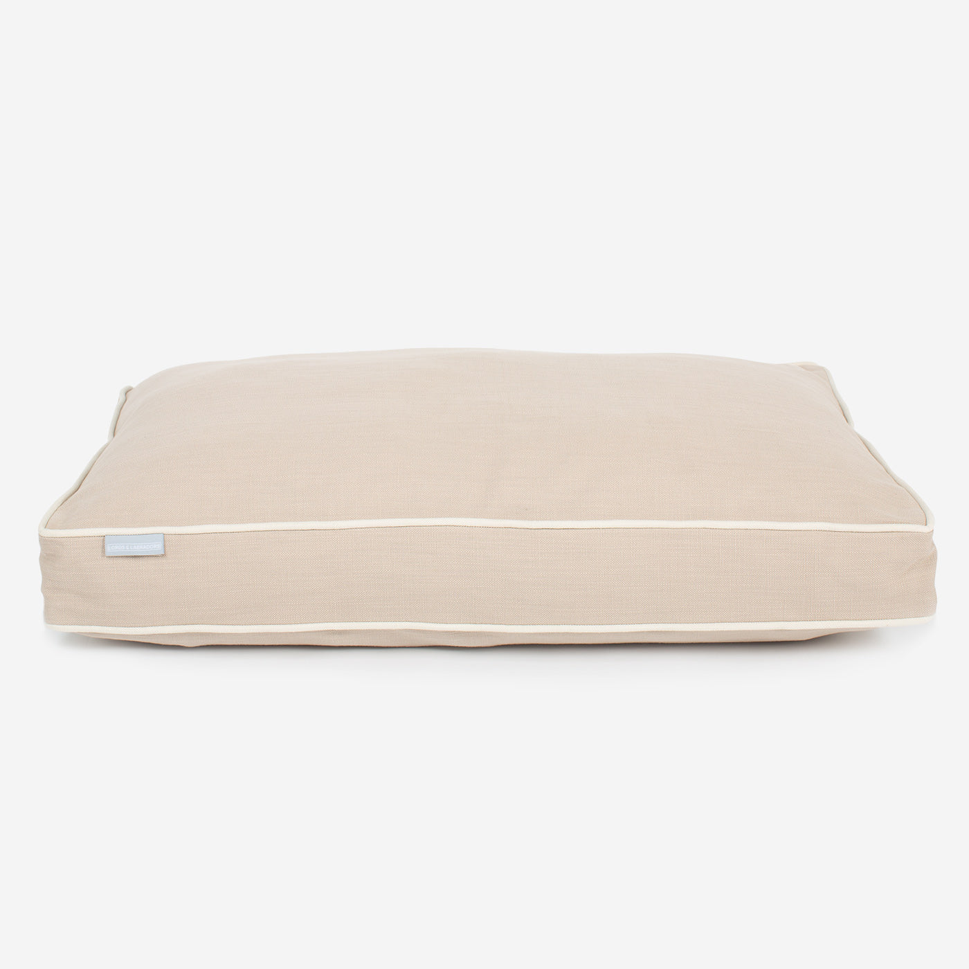 The Lords & Labradors Dog Cushion in Savanna Oatmeal will offer your puppy or adult dog the most comfortable place to nap, rest and sleep. Our cushions are deeply filled, and feature covers that are removable and washable, making them practical as well as stylish. This version of our cushion dog bed comes in the sophisticated Oatmeal Savanna fabric. A modern classic made of cotton and piped in a contrast ivory piping. The oatmeal colourway is a sophisticated neutral shade that will look fabulous in any home!