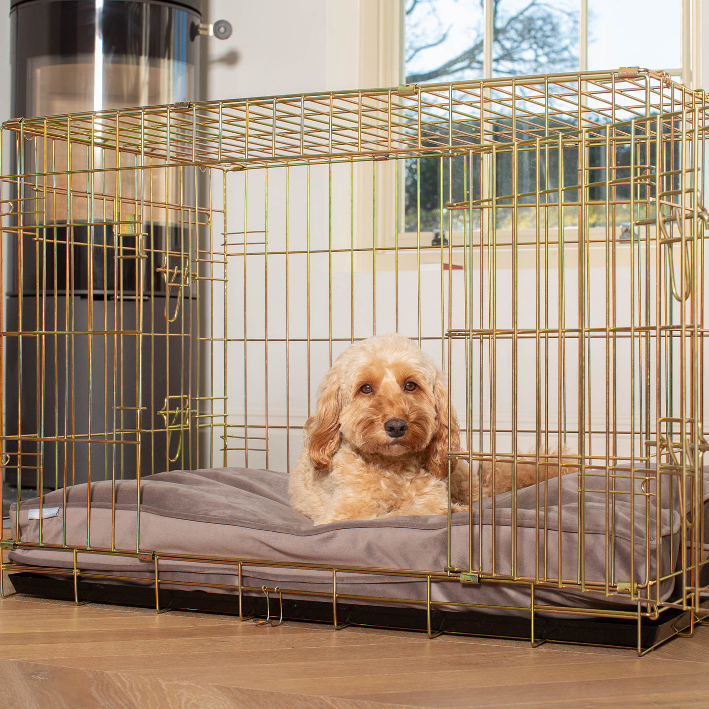 Experience pure luxury with a Dog Cushion in Velvet Silt by Lords & Labradors. Perfect for lounging, this versatile cushion can be used in a crate or as a standalone bed. It's super-plump and ideal for post-walk relaxation. Available in 5 sizes and 8 stunning colours, add a personal touch with customisation.