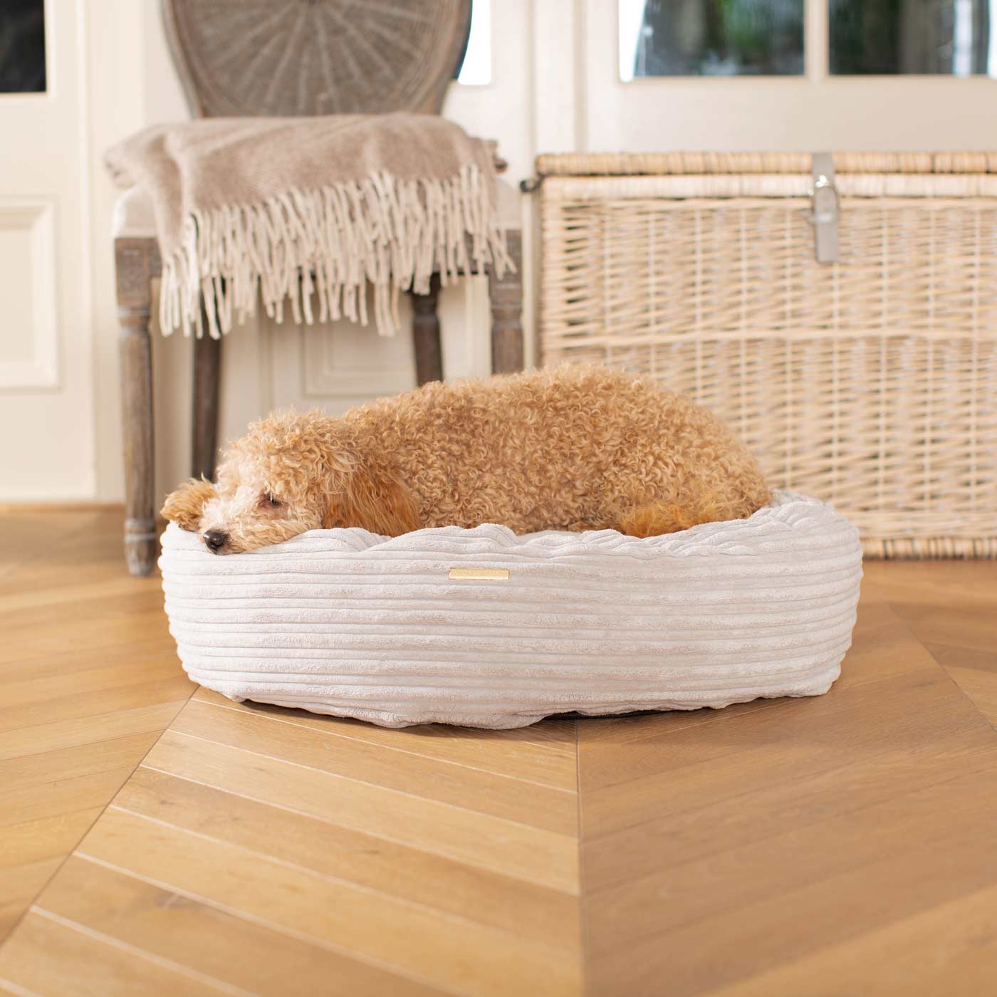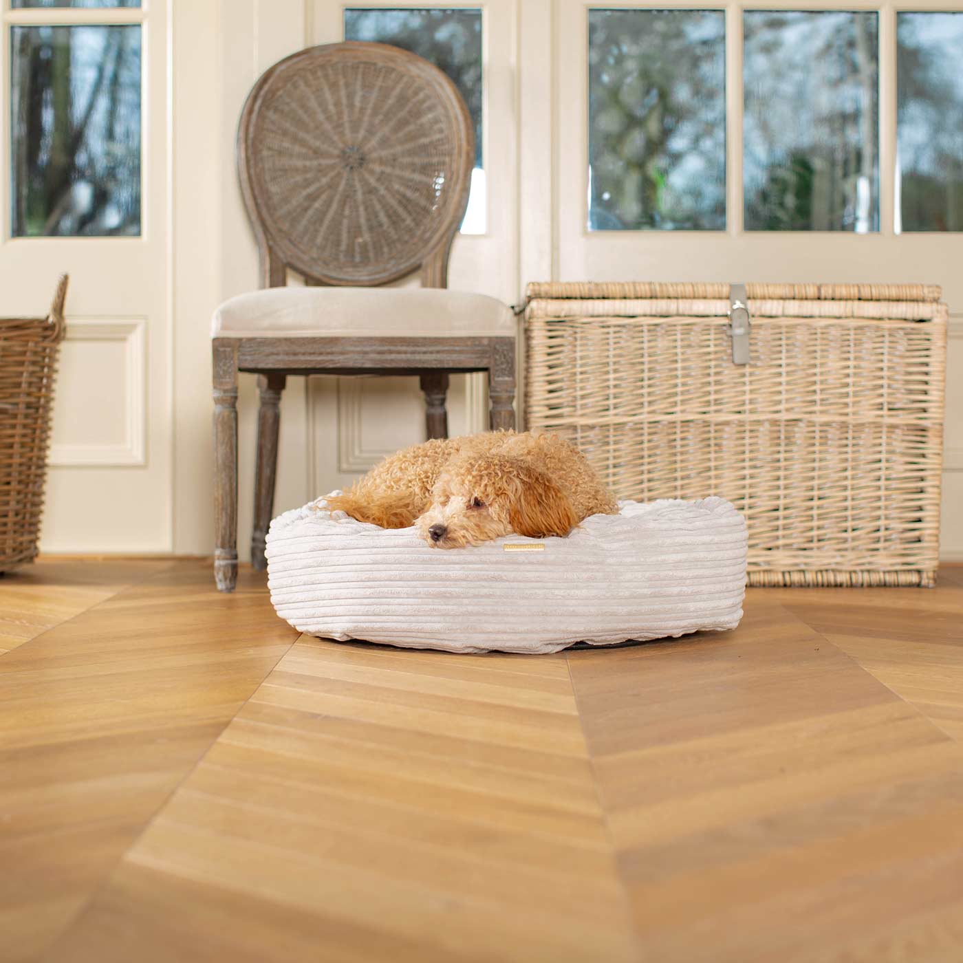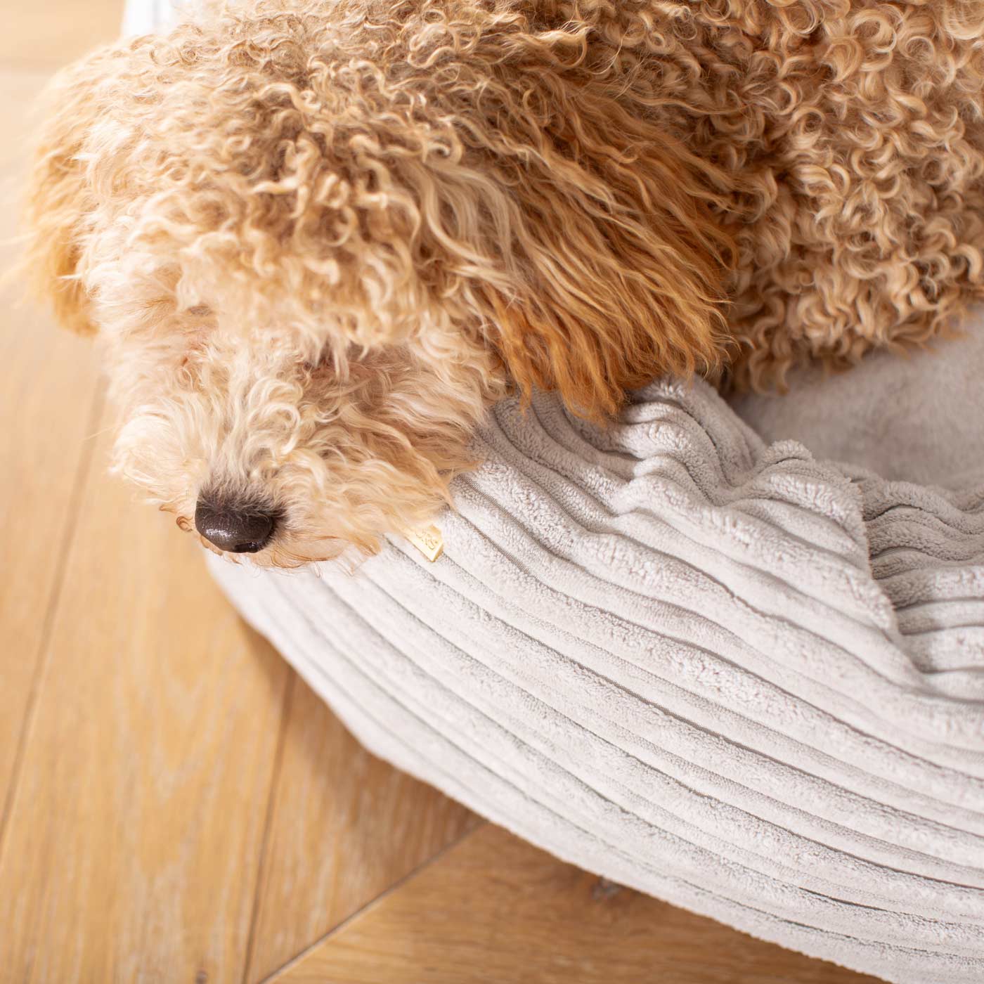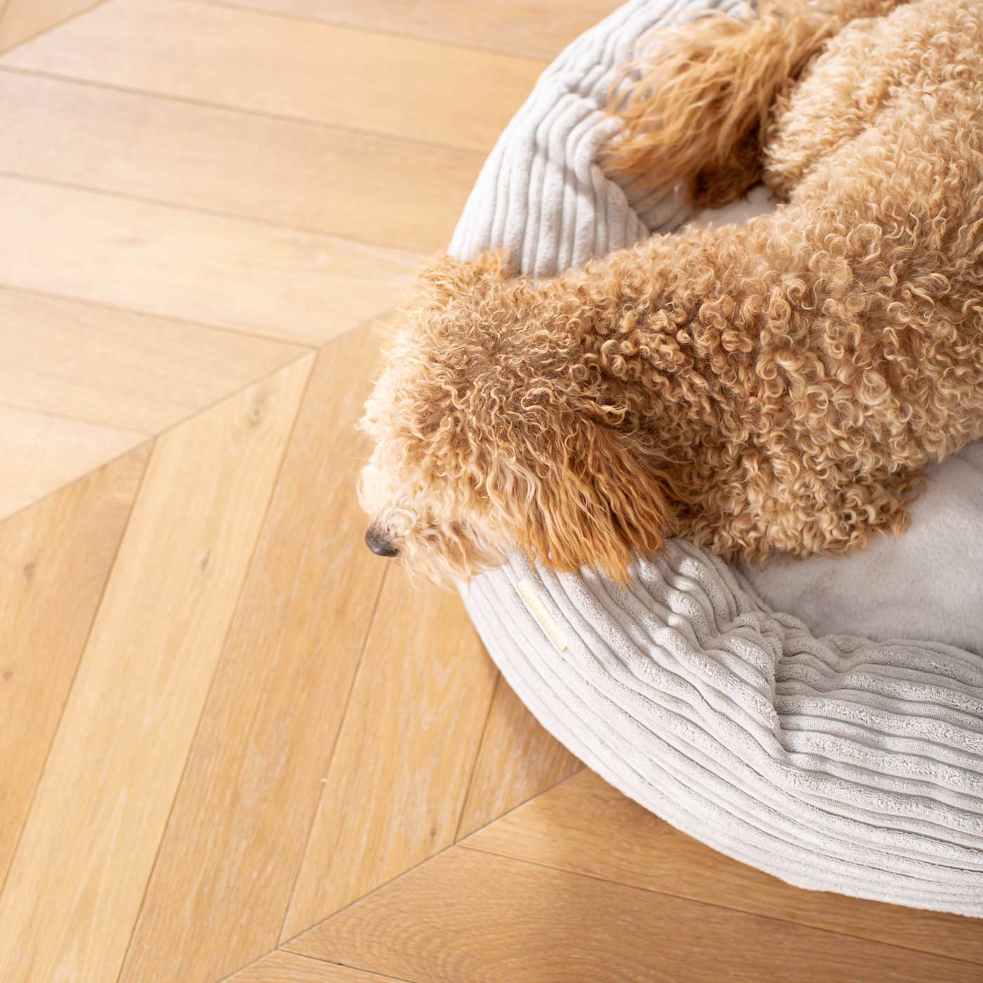 Introducing the Donut Bed in Light Grey Essentials Plush by Lords & Labradors. Handmade with super plump and cosy Light Grey fabric, this bed features cushioned walls for ultimate comfort and protection. The non-slip base ensures stability, and it's machine washable for easy upkeep. Available in two sizes to suit all breeds. Your pup will love this snuggly haven!