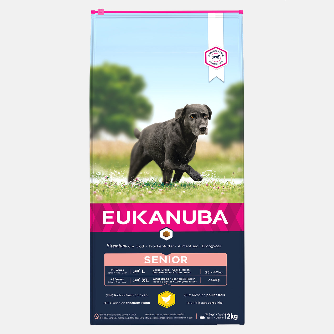 Eukanuba Large Breed Senior Dog Food 12KG is the complete nutrition for large/giant breed dogs over 25KG. It is specially formulated for dogs over 8 years old, providing essential nutrients to support strong bones, healthy joints and mobility, and help manage weight. It is rich in fresh chicken and contains calcium, glucosamine and chondroitin, and L-carnitine.