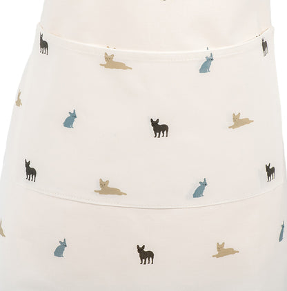 The Fabulous Frenchies Apron is crafted from cotton and features our adorable French Bulldog inspired print. It has a large practical pocket on the front waistline, an adjustable neck strap and extra long ties which can be tied at either the front or the back.