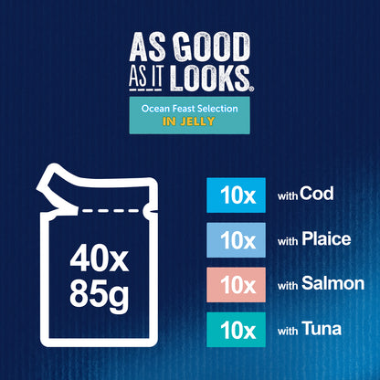 Felix As Good As it Looks Ocean Feasts Wet Cat Food in Jelly (40 x 85g)
