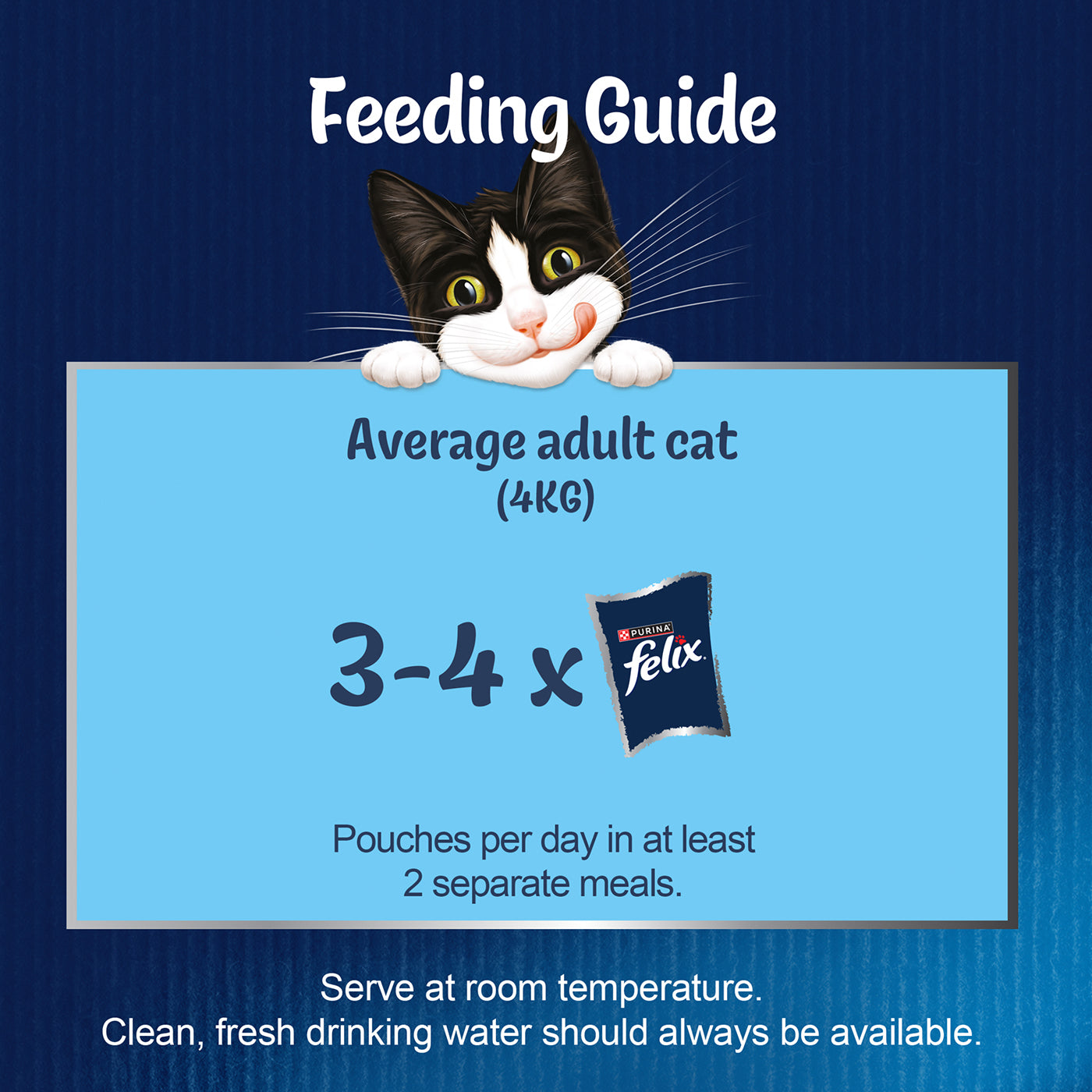 Indulge your feline friend with Felix As Good As it Looks Ocean Feasts Wet Cat Food in Jelly. Made with a choice of cod, plaice, salmon, and tuna, this 100% complete and balanced meal is packed with Vitamins A & E and Omega-6 Fatty Acids for optimal health. Say goodbye to artificial flavours and preservatives and hello to a delicious and nutritious ocean feast for your cat!