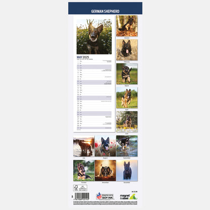 Expertly designed for German Shepherd lovers, this slim calendar for 2025 features a cute photo for every month. Keep track of important dates and stay organised with clear lines for notes. Its slim design takes up minimal room, making it the perfect gift for any German Shepherd enthusiast.
