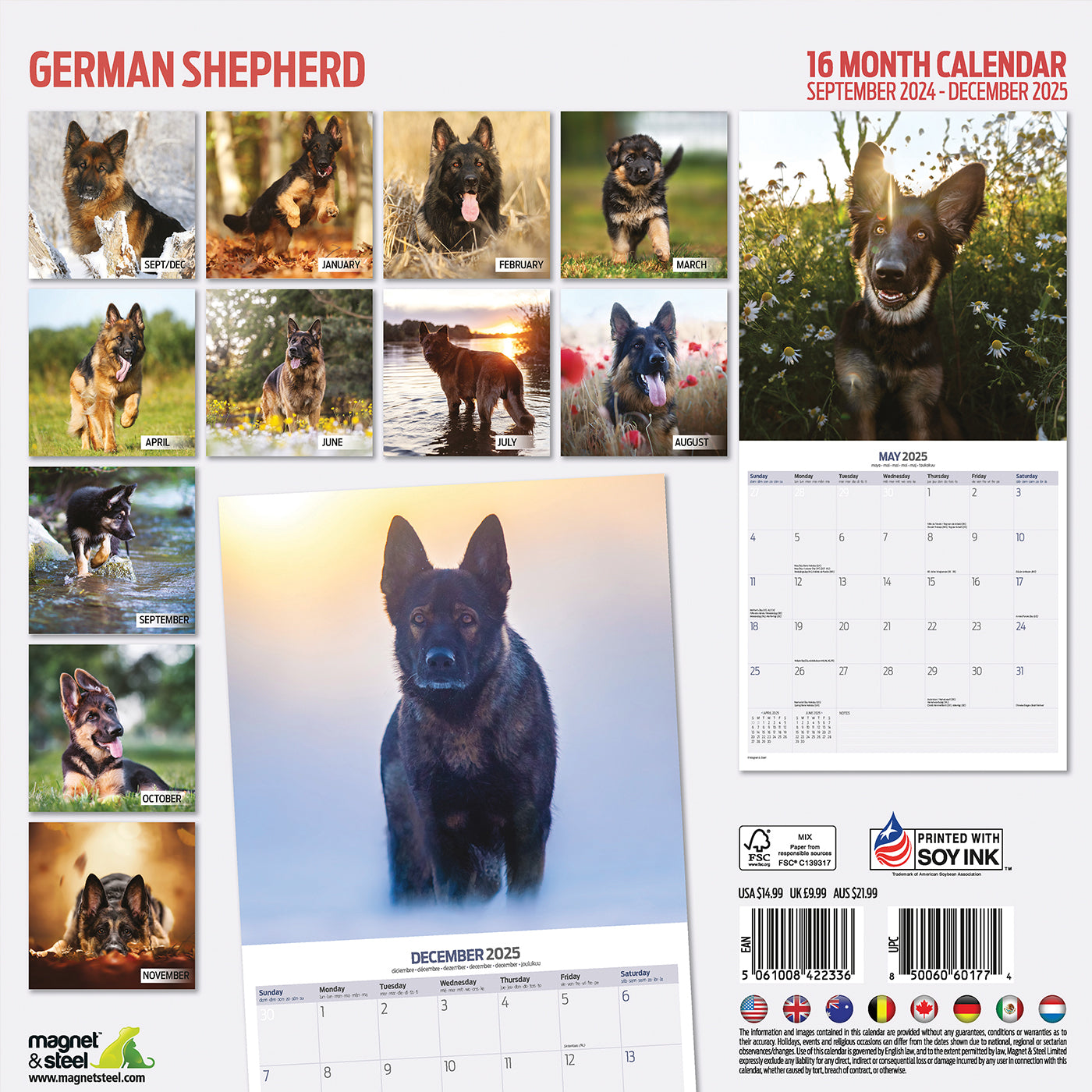 The German Shepherd Deluxe Calendar 2025 is a must-have for any Shepherd lover. Each month features an adorable photo, while the clear grid and note space keep you organised. With its wire bound design, this calendar is not only beautiful but also durable. Makes a perfect gift.