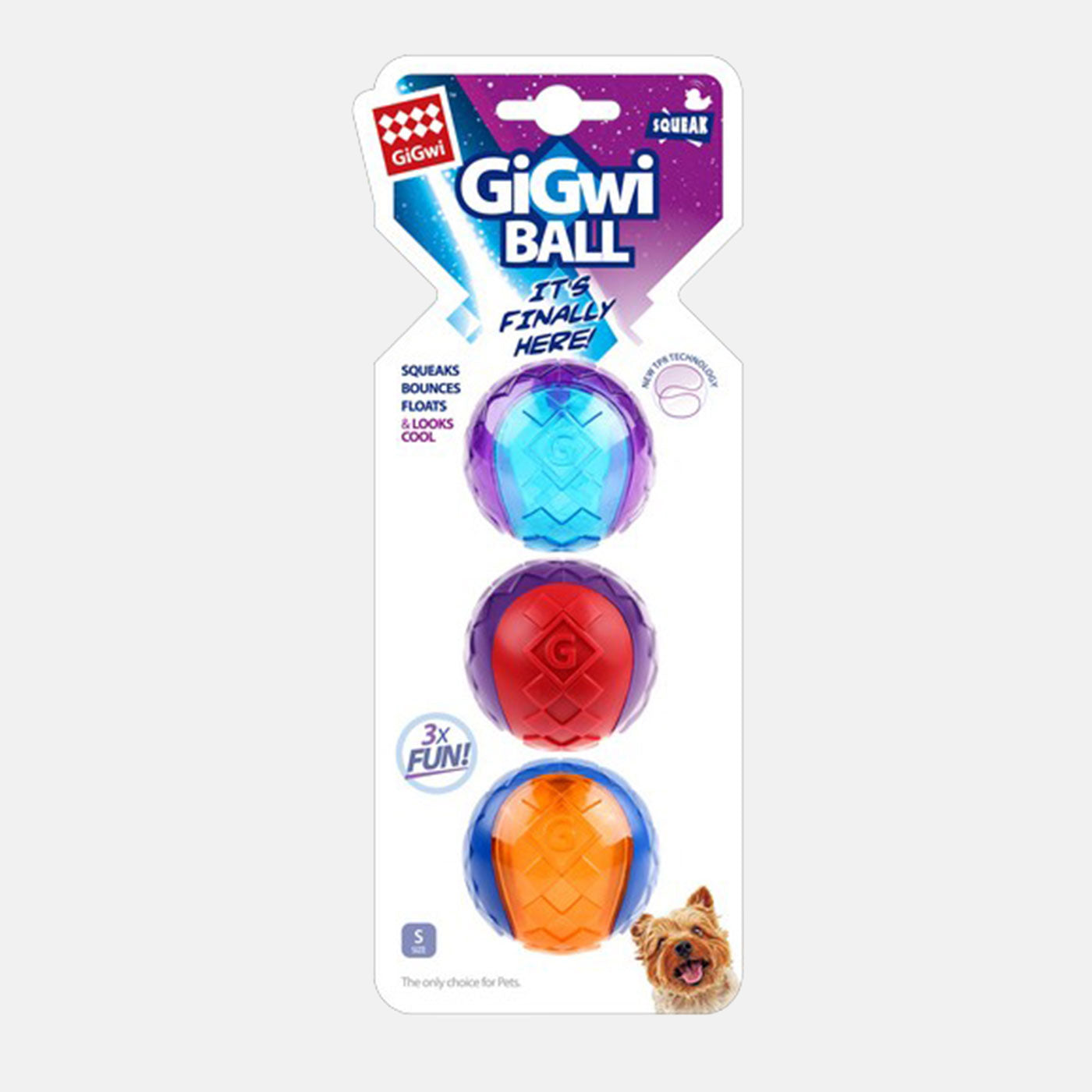 GiGwi Ball with Squeaker 3 Pack is the perfect toy for active pets who love to play fetch. The textured balls are easy to grip and float on water, making them great for outdoor activities. Also, each ball is brightly coloured and equipped with a squeaker, making it easy to find and even more fun to play with.