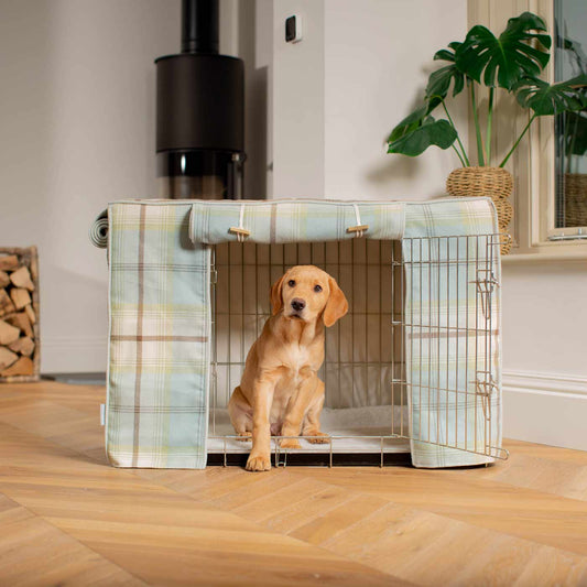 Dog Crate with Cosy & Calming Puppy Crate Bed in Balmoral Duck Egg Tweed by Lords & Labradors
