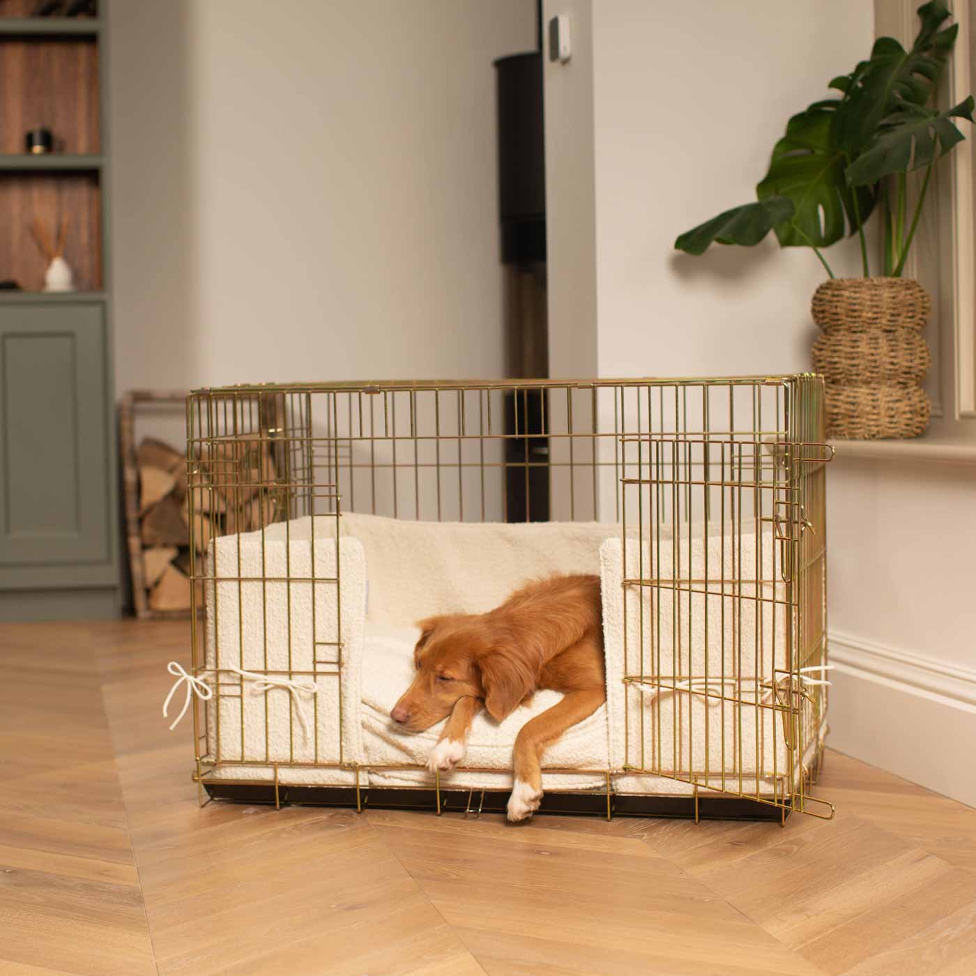 Dog Crate with Cushion & Bumper in Ivory Bouclé by Lords & Labradors