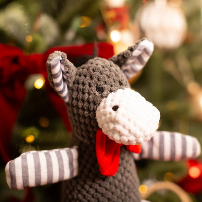 Cute donkey toy perfect for small/puppy breeds. Hidden squeaker for added fun and prolonged playtime. Shop here!