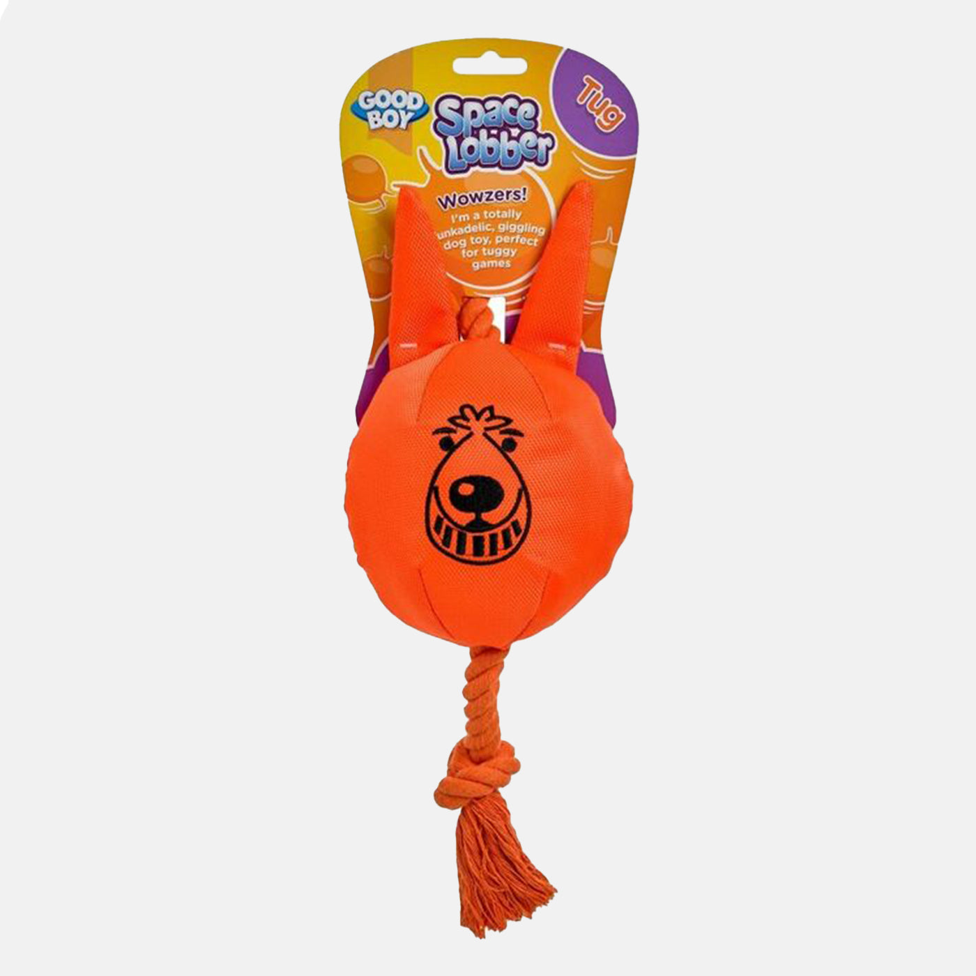Introducing the Good Boy Space Lobber Tug, a tug toy perfect for dogs who love fetch and tug-o-war. This toy has an adorable, nostalgic shape and a rope for chewing. And the built-in giggler noise is sure to entice and spark your pet's interest in play. Keep your pup entertained and occupied with this must-have toy!