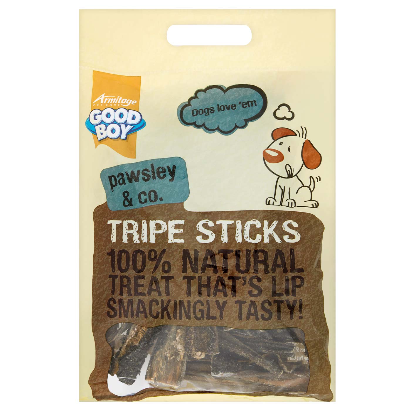 Keep your pup happy with these Good Boy Tripe Sticks. Their natural and tasty flavor is sure to please, and no artificial colors, flavors or preservatives mean peace of mind for pet parents. Made from 100% beef tripe, these crunchy sticks have texture that helps keep teeth clean.