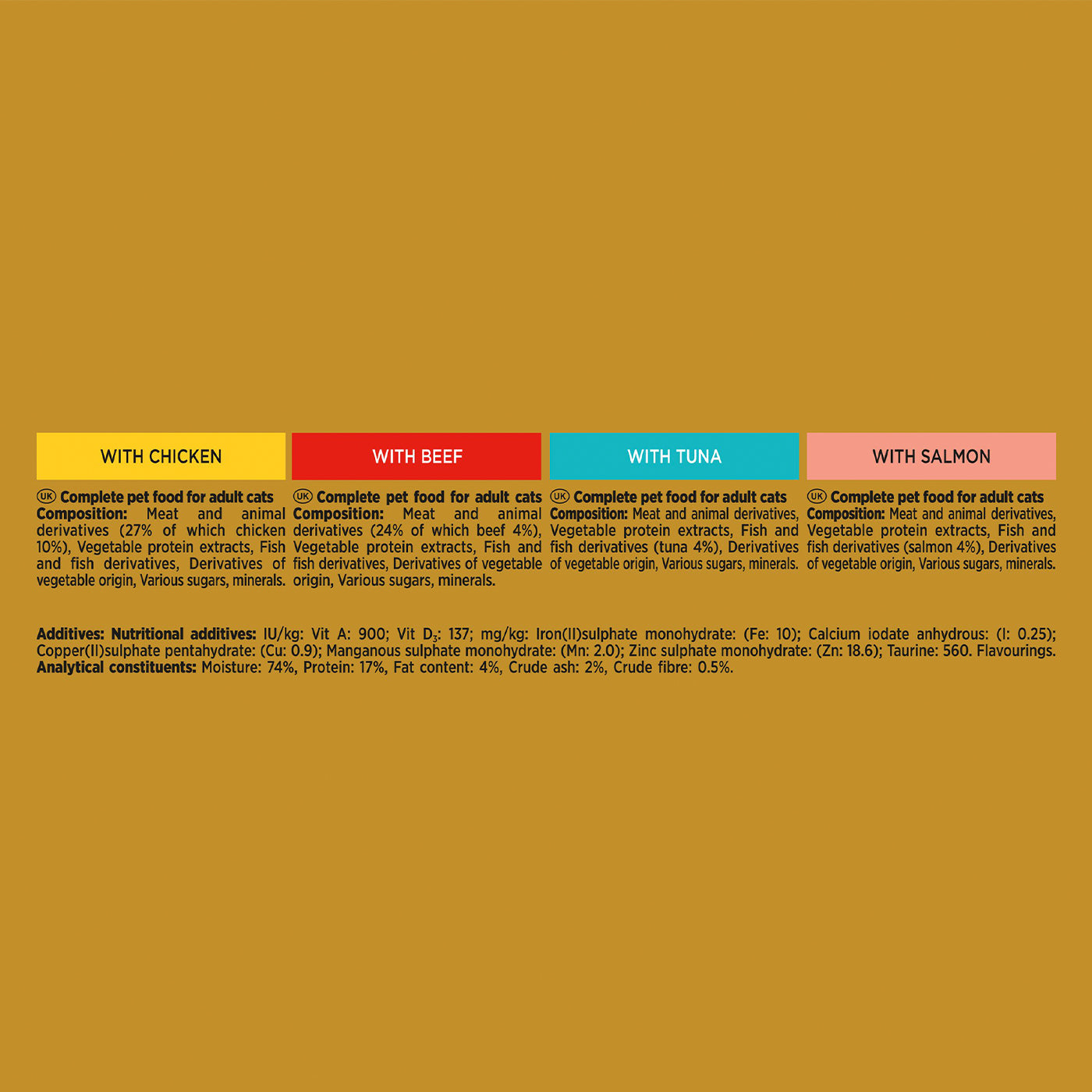 This Gourmet Gold Adult Savoury Cake Meat Multipack Cat Food is a complete and balanced meal for adult cats. With eight delicious 85g cakes, each featuring chopped pieces of beef, chicken or other exquisite flavours with a hint of sauce, your cat will enjoy a delightful eating experience. Made with high quality ingredients and no added colourants, artificial flavourings or preservatives, it's the perfect choice for cats who deserve something special.
