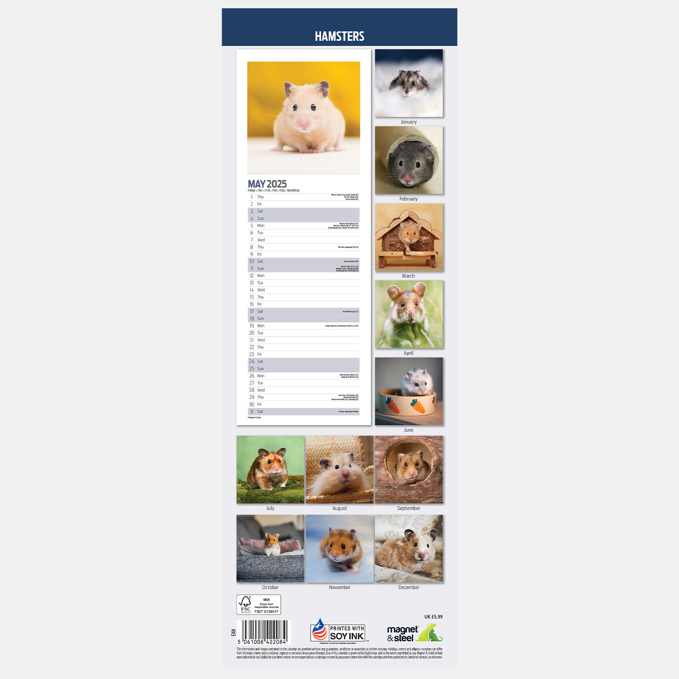 This slim calendar for 2025 features adorable photos of hamsters for every month, making it the perfect gift for hamster lovers. With clear lines for notes, it helps you stay organized while taking up minimal room. Stay on top of your schedule with this cute and compact calendar.