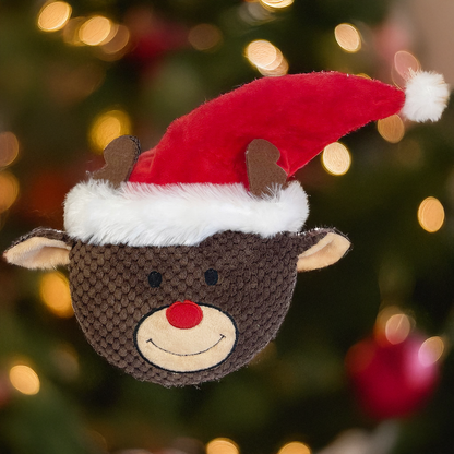 The Happy Pet Reindeer Flattie is the perfect cuddly companion for your dog this Christmas! Made with super soft material, it's sure to become your pup's favourite toy. Its arms, moustache, and hat make carrying a breeze, and the hidden squeaker adds an extra element of fun.