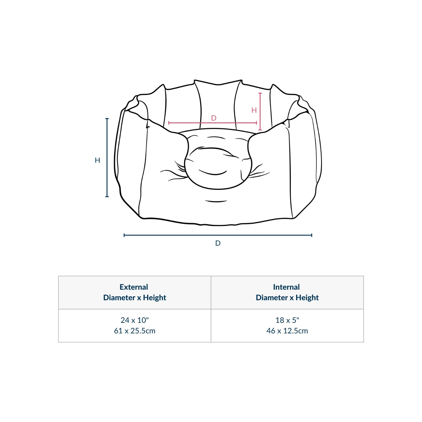 Help your feline friend get cosy with our brand new sumptuous high sided bed with a reversible inner cushion with teddy fleece one side and patterned fabric on the other. You cat is going to love getting cosy and curled up, it is sure to be a hit with your feline friends! It's the perfect size cat bed to use from kitten hood through to adulthood and will offer superior comfort for both afternoon catnaps and evening snoozes alike!