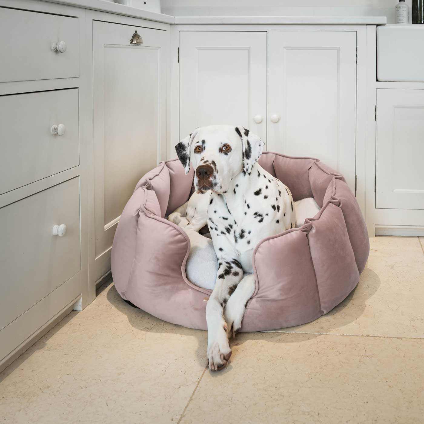 Indulge your furry friend with our High Wall Dog Bed In Velvet Blossom. Made with luxurious velvet and filled with 100% polyester, this bed offers the perfect head rest for your pet. Crafted for durability, it's ideal for small to large breed dogs and comes in 3 sizes and 8 stunning colours. Give your dog the perfect nap after walks, play, or bath-time.