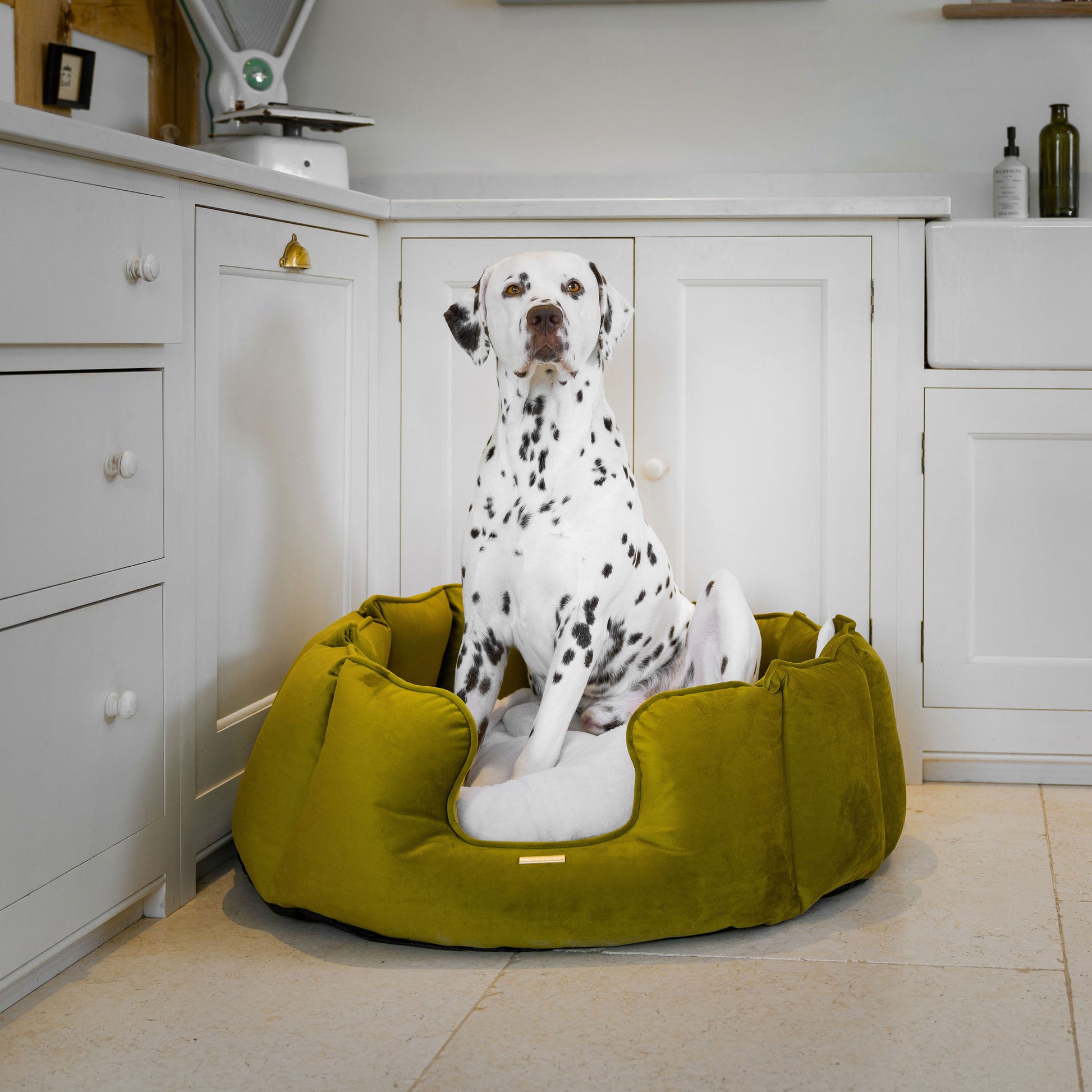 Indulge your furry friend with the luxurious High Wall Dog Bed in Velvet Olive. Made with soft velvet and filled with 100% polyester, this bed offers ultimate comfort and support for small to large breed dogs. The raised sides provide the perfect headrest for post-walk or play naps. Durable and available in 8 stunning colours, it's the ideal addition to your dog's everyday routine.