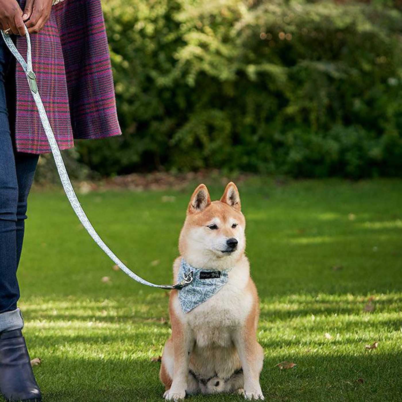 The Hiro + Wolf x Lords & Labradors Classic Dog Lead is a luxury lead suitable for small and medium breeds. Crafted from beautiful printed fabric and trimmed in vegetable tanned leather these collars will make your hound stand out from the crowd! Hiro + Wolf use high quality solid D rings. These unique dog Leads are rigorously tested by Hiro + Wolf on muddy walks through Hackney marshes and the occasional shopping trip to Liberty!