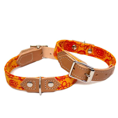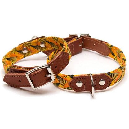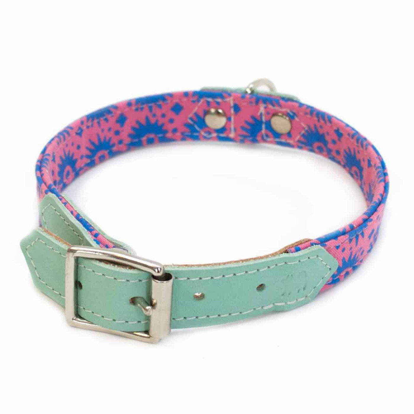 The Hiro + Wolf Dog Collar is a luxury collar suitable for small breeds and puppies. Crafted from beautiful printed fabric and trimmed in vegetable tanned leather these collars will make your hound stand out from the crowd!