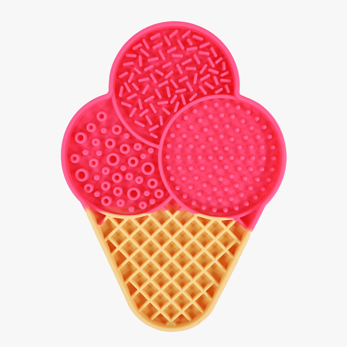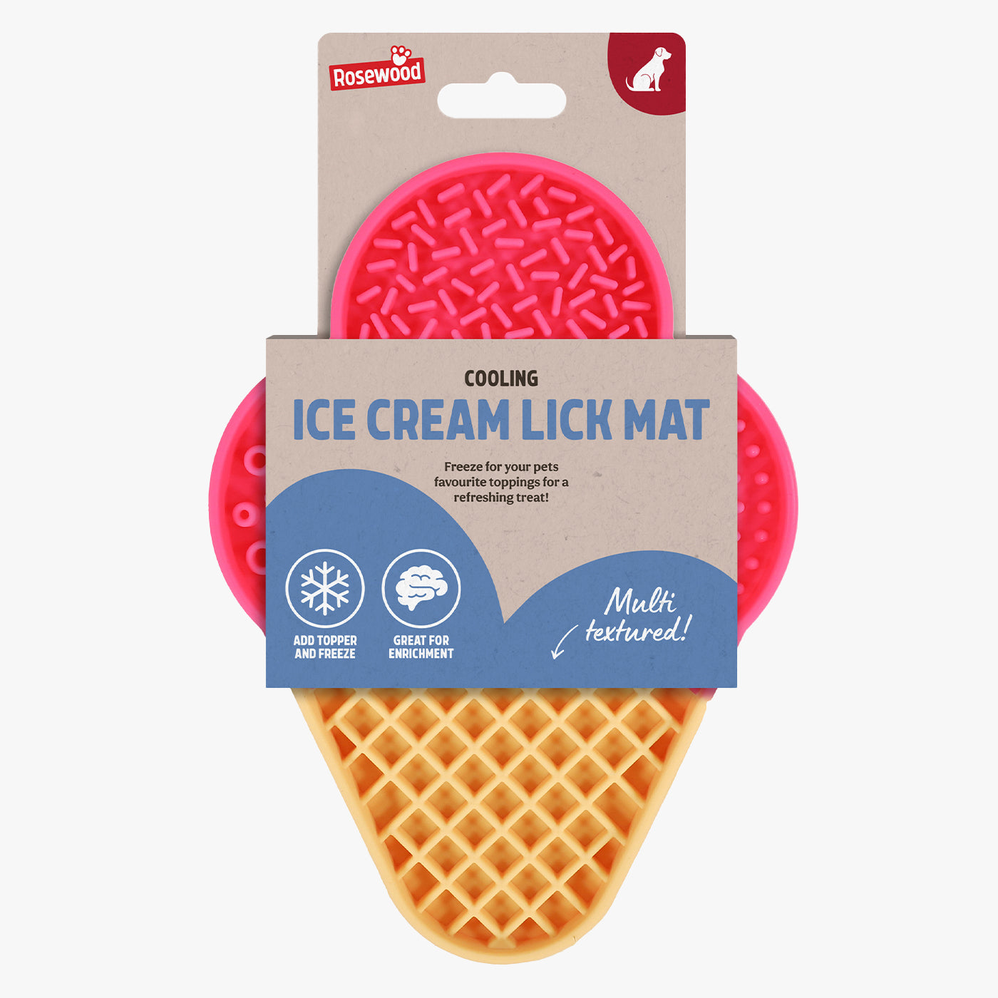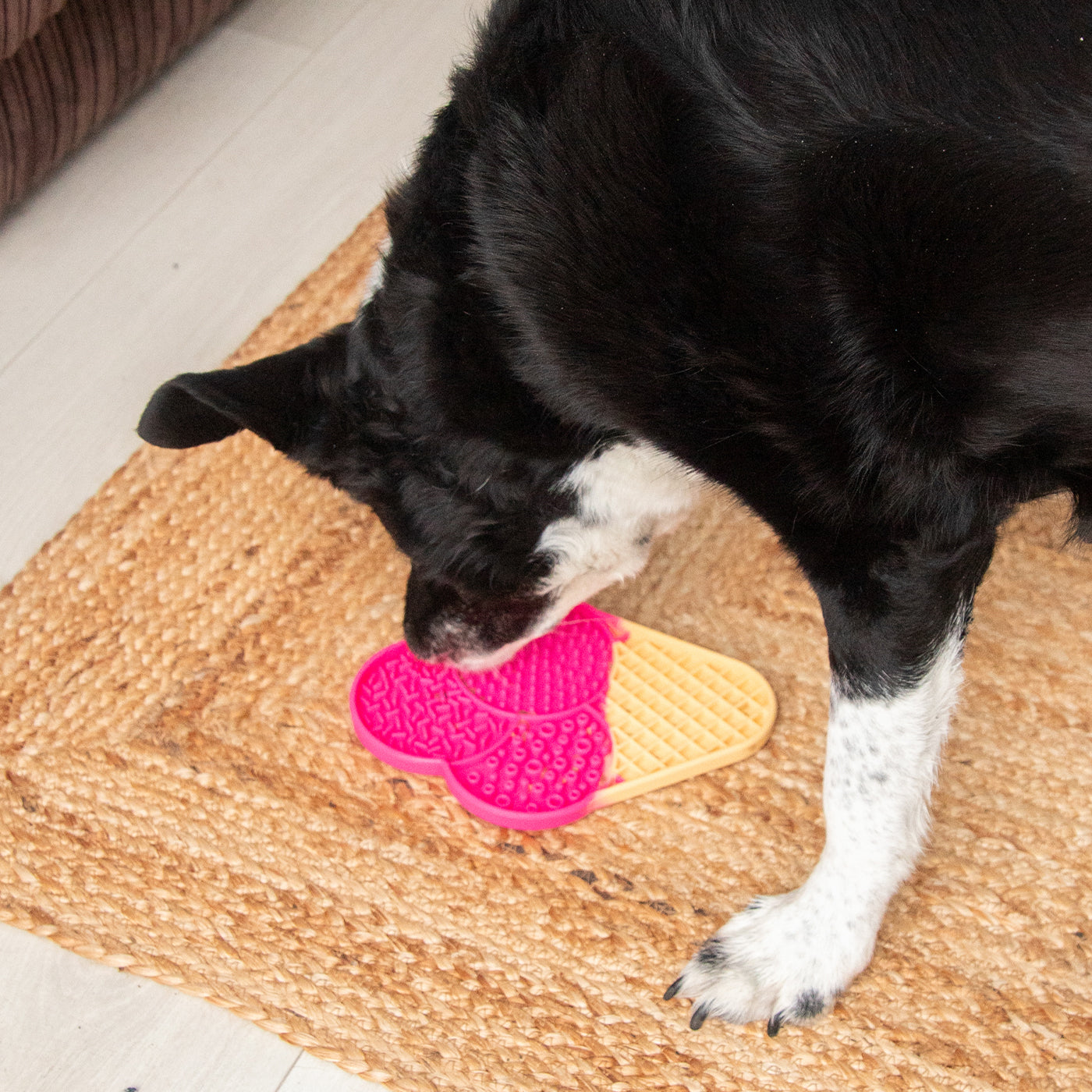 The Ice Cream Lick Mat offers a fun and soothing way to keep your dog engaged and calm. Designed with four different textures, it slows down feeding to promote healthier eating habits. Perfect for freezing with yoghurt or peanut butter, it provides a refreshing treat that helps relieve anxiety. The mat’s suction cups keep it securely in place during use, while its adorable ice cream design adds a playful touch to mealtime. Ideal for keeping your pet entertained and relaxed, this lick mat combines practicality with charm.
