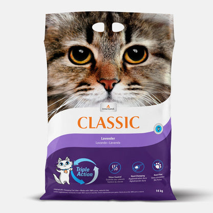 Intersand Classic Lavender Cat Litter is the expert choice for a clean and fresh litter box. With instant clumping, it makes cleaning a breeze and absorbs 400% of its weight in liquid. This 99.9% dust-free and non-tracking litter is also scented with lavender to keep unpleasant smells at bay. Comes in a convenient 14kg bag.