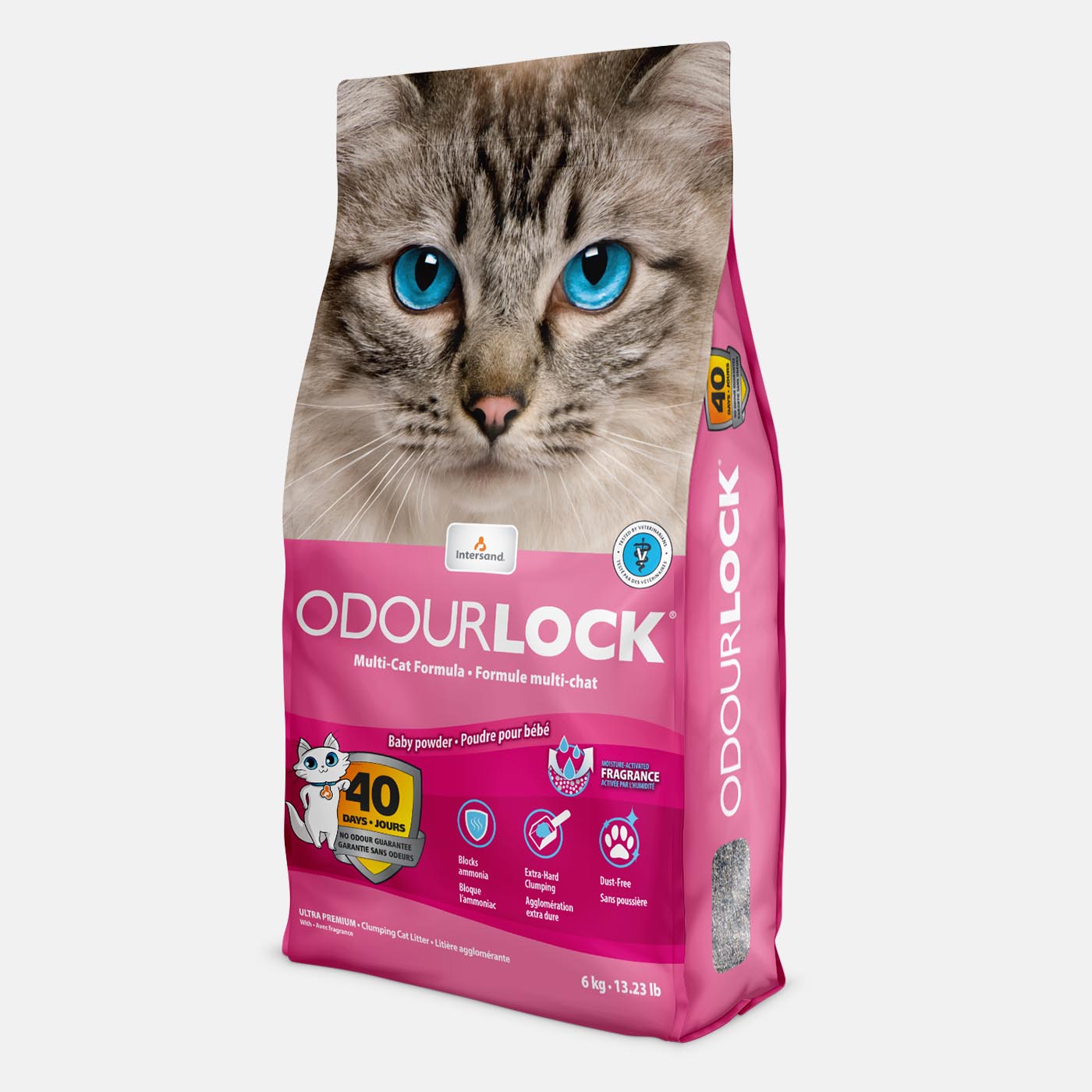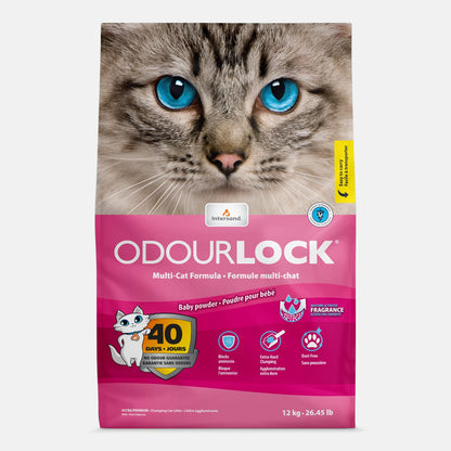 Intersand Odourlock Baby Powder Cat Litter utilises patented technology to eliminate ammonia formation and reduce urine odour. The ultra-fast clumping reduces litter usage by over 45%, while 99.9% dust-free formula promotes respiratory health. Made with 100% pure, natural clay, this litter features a refreshing baby powder scent. Available in 6kg or 12kg bag sizes.