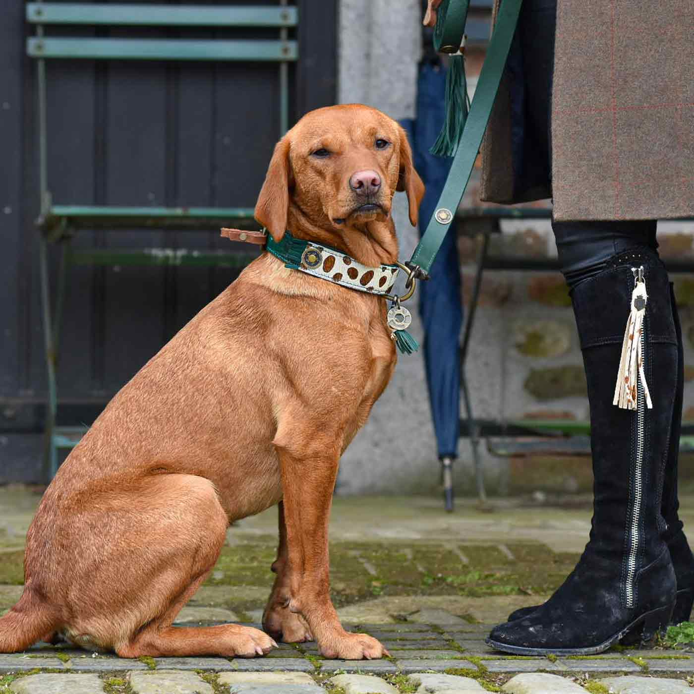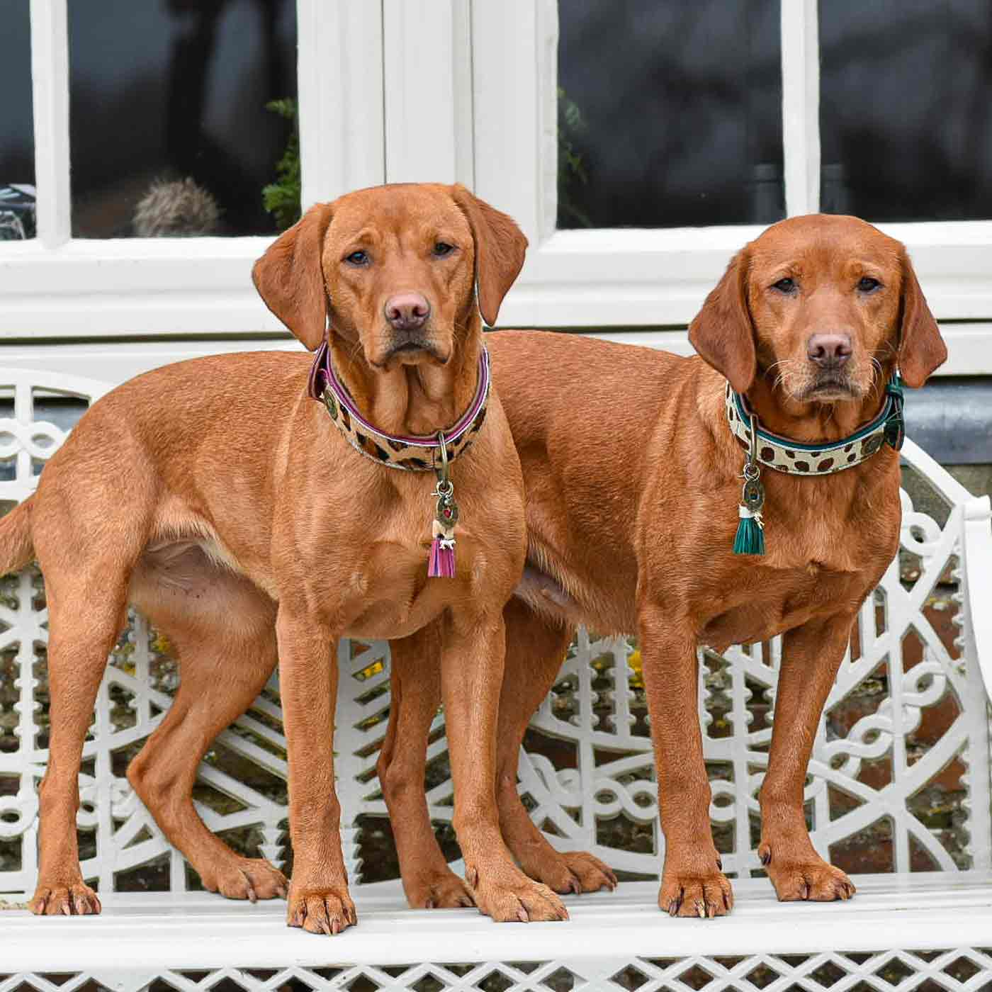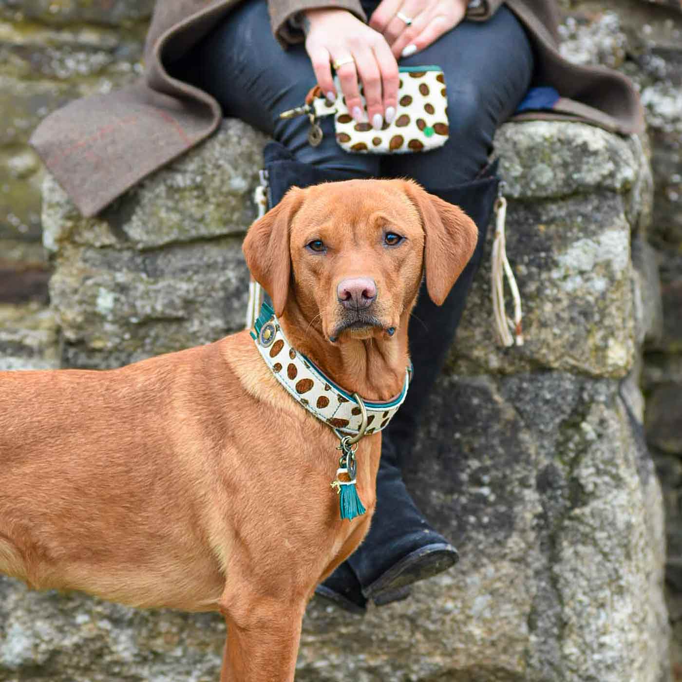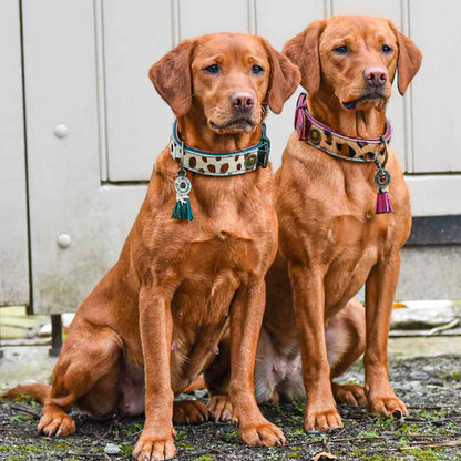 Elevate your pup's look with the Ivy Dog Collar by DWAM. This stylish collar features a unique animal print design, crafted with sturdy leather and brass hardware for durability. Complete the look with a matching lead. Available in 7 sizes for all breeds. Make your dog the star of the pack.