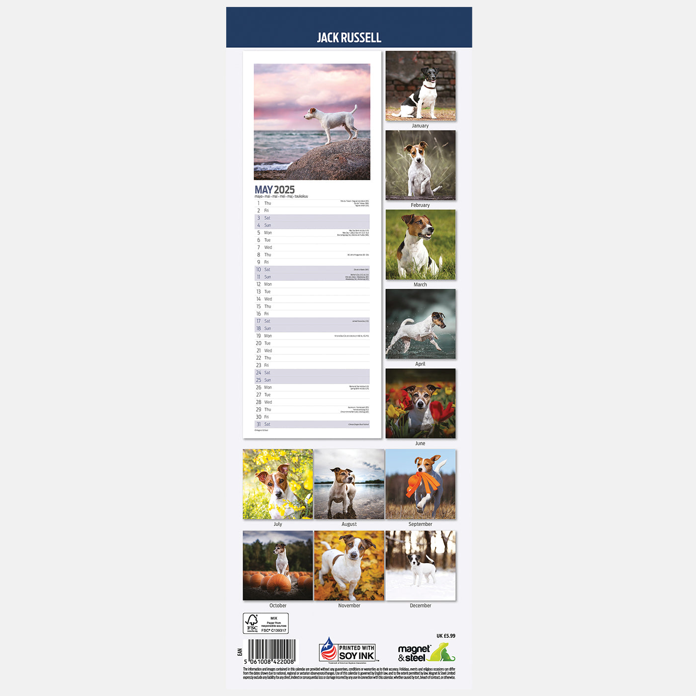 Stay organised and delight in your love for Jack Russells with the Jack Russell Slim Calendar 2025. This professionally designed calendar features adorable photos for every month, a clear grid for easy viewing, and space for notes. The slim design takes up minimal room, making it the perfect gift for any Jack Russell lover.
