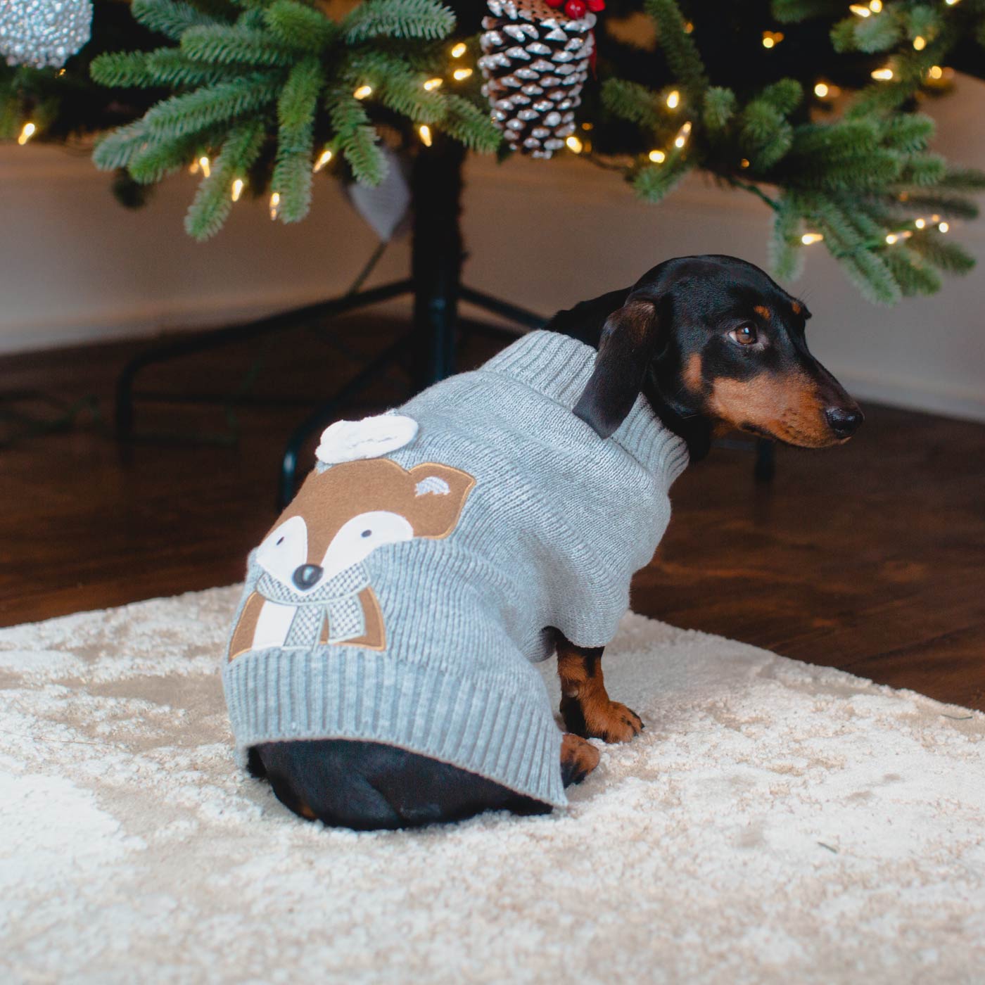 - Festive print, high neck knit jumper - stretchy to fit all size of dogs