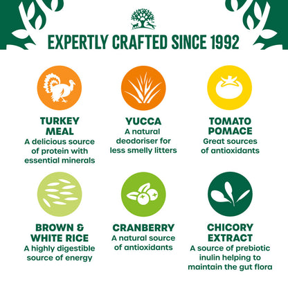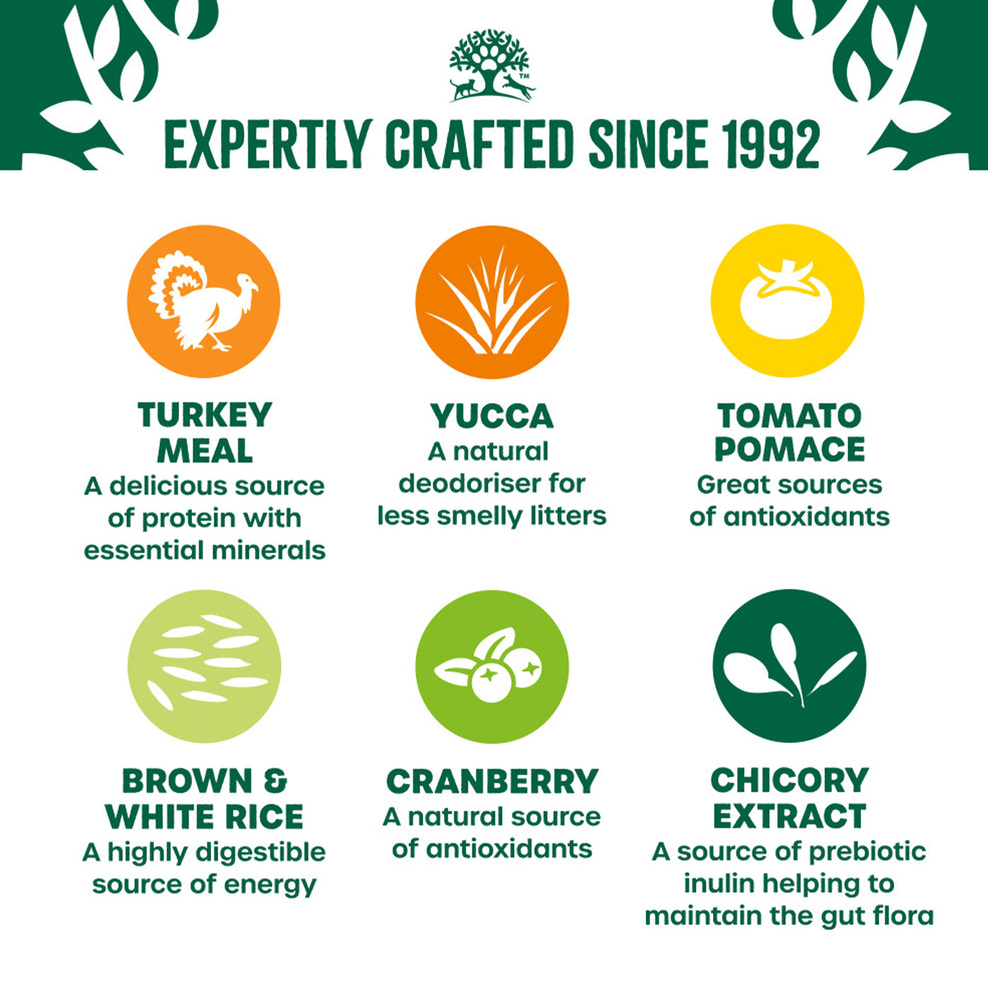Formulated with respect for the natural composition of the feline diet. Salmon and turkey are sources of essential amino acids.