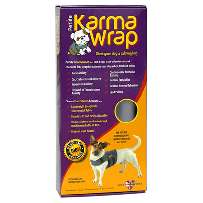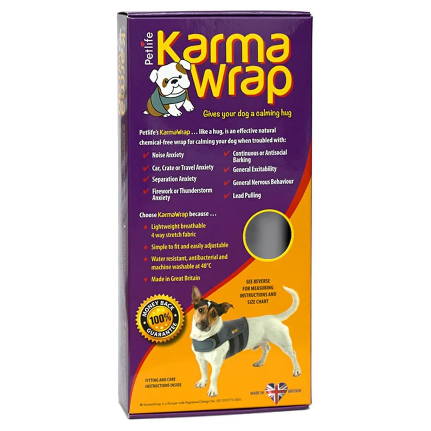 The Karma Wrap Anti Anxiety Dog Coat by Pet Life reduces anxiety in dogs. It gently applies pressure around the chest for a calming effect, like a hug. Perfect for dogs feeling nervous in stressful situations like fireworks, thunderstorms, and vacuuming. Start calming your pup today.
