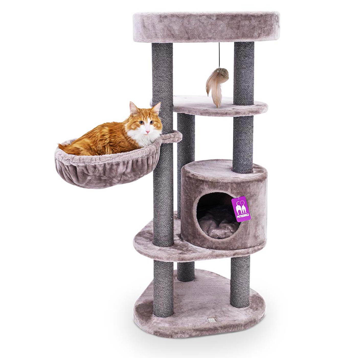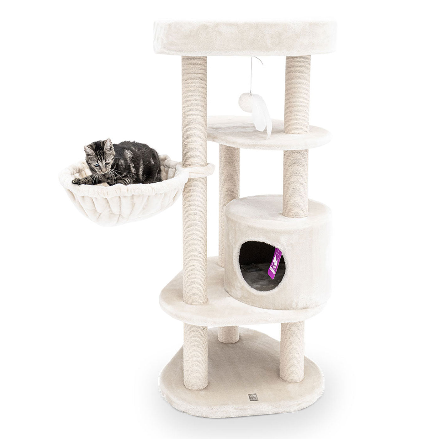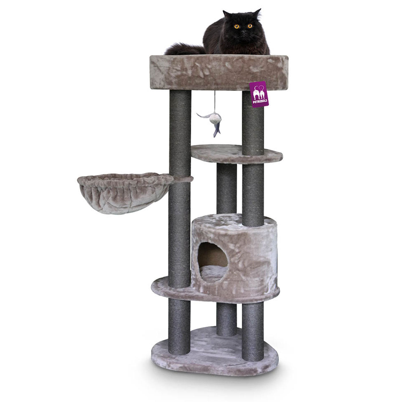 The Kings & Queens Charlotte 134cm Cat Tree is perfect for cats of all sizes. It features a soft sleeping cave and comfy hammock for restful sleeps and three sturdy scratching posts for sharpening claws. Compact yet durable - this is ideal for relaxing cat naps in any home.