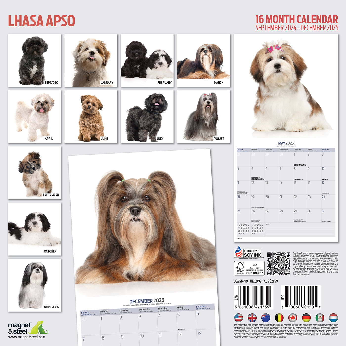 Introducing the Lhasa Apso 2025 Modern Calendar, the perfect gift for any Lhasa Apso lover. With a cute themed photo for every month, this 16-month calendar (Sep 2024 to Dec 2025) also features clear grids and a notes section to help you stay organised. Stay on top of your schedule with this stylish and functional calendar.