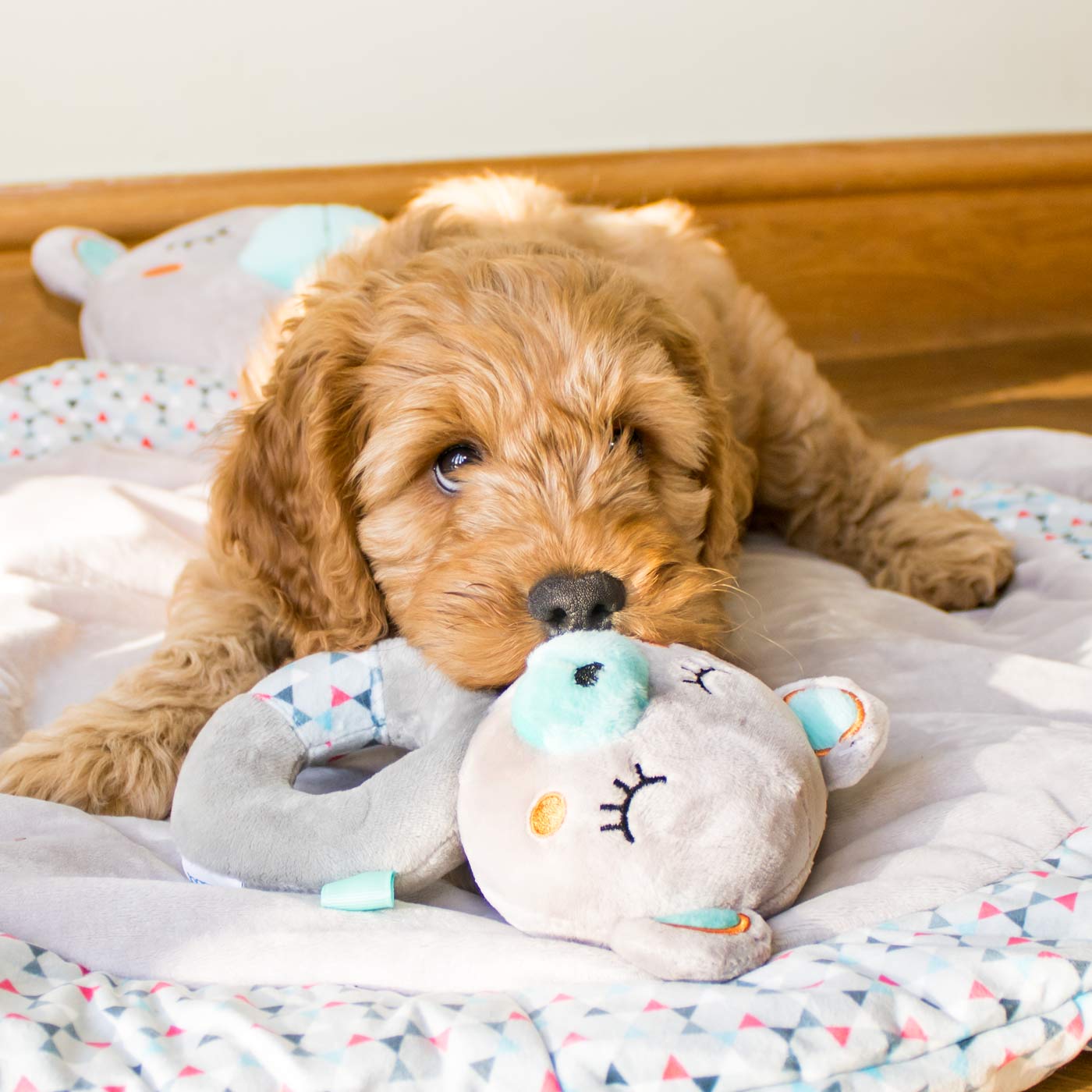 With a squeak and a crinkle this cute cuddly character has everything a pup could want to keep them entertained and happy for hours. The tough, durable feet are designed to cope with tiny teeth.