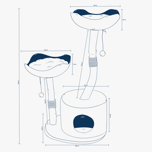 - Natural wood and sisal sections encourage scratching