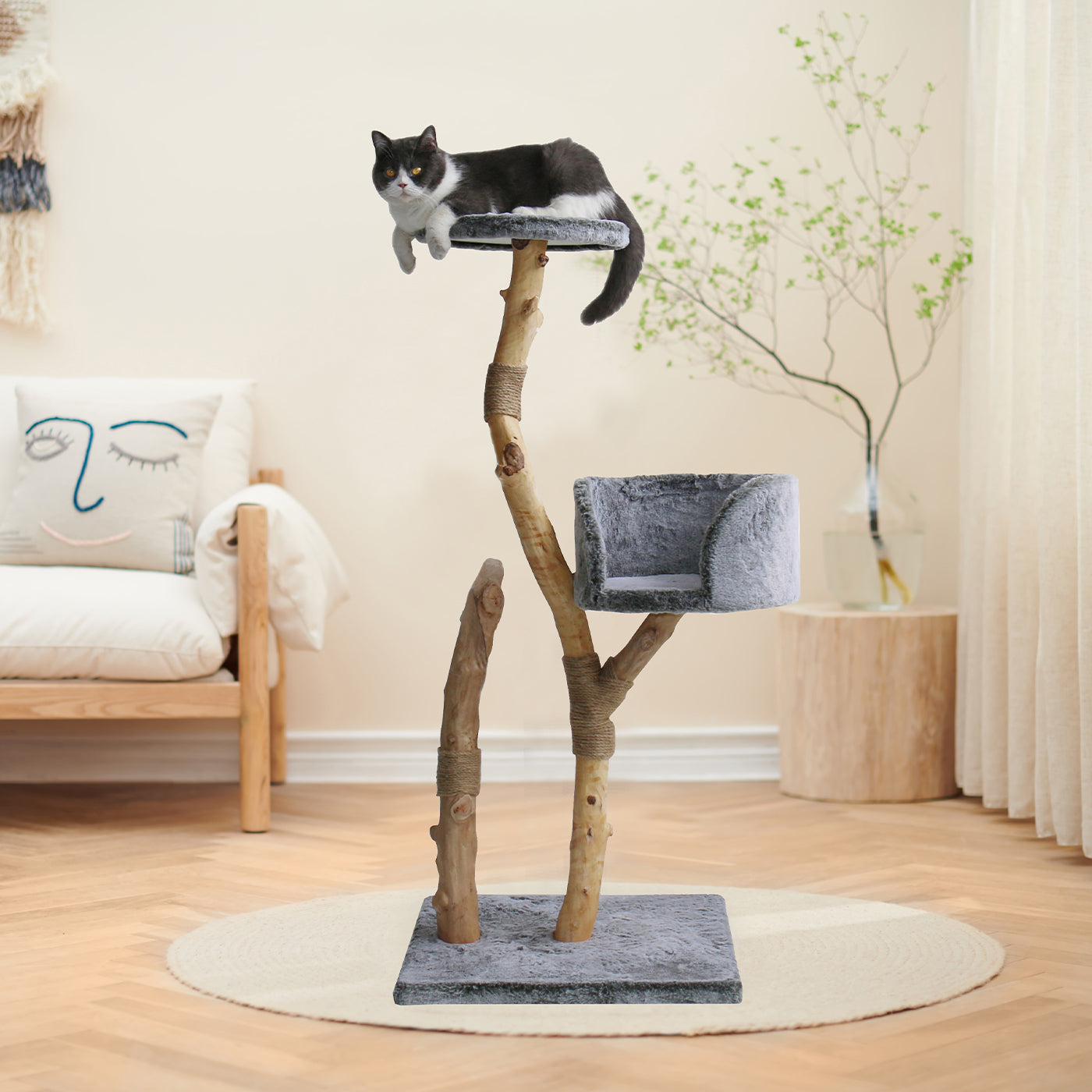 Introduce your cats to the height of luxury with the Lords & Labradors Back to Nature Trio Cat Scratch Post. This stylish, sophisticated trio cat tree features three branches, perfect for multiple cats to explore, with a smaller pole ideal for scratching behaviours and look-out platforms to encourage curiosity and behaviour. Constructed from thick and natural wood, this product ensures maximum durability and longevity. Let your cats enjoy the unrivalled comfort of this luxuriously exclusive back to nature cat scratch post.