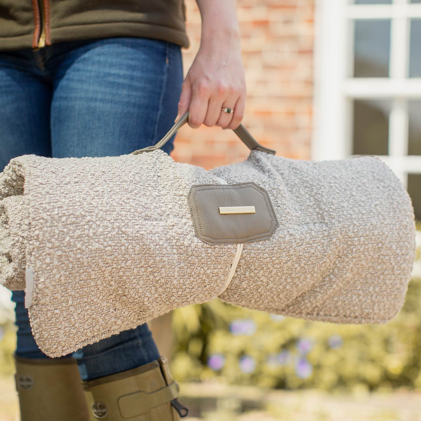 The Lords & Labradors Bouclé Travel Mat is expertly crafted with hardwearing Bouclé fabrics to provide a durable and comfortable solution for life on the go. Roll up the mat for easy storage, or use the convenient carry handle to take it with you wherever you go. Can be used as a seat cover, boot mat or travel bed in two sizes and three colours.