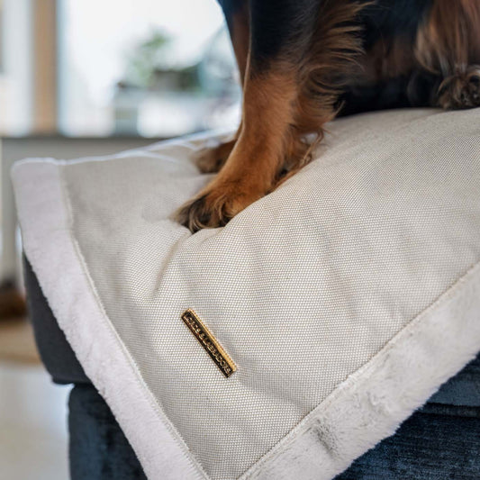Snooze in style with this Lords & Labradors Essentials Twill Box Bed Linen! Removable inner cushion and machine-washable, this linen-colored canvas fabric ensures your pup's comfort and your home's style. The inside cushion is plush, reversible, and oh-so-cozy. With convenient carry handles on either side and a golden L&L plaque for extra style, no pup's bedroom is complete without it! Hand-made in Italy - now that's paw-some!
