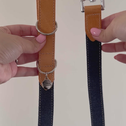 Lead your pup in style with the Lords & Labradors Essentials Twill Dog Lead! Handcrafted in Italy with strong canvas fabric and Italian leather, it's a luxurious way to secure your four-legged friend, complete with a silver clip and embossed, hanging charm sporting the iconic L&L logo. Not to mention, it comes in two sizes so even the biggest, burliest Labradors can strut their stuff.