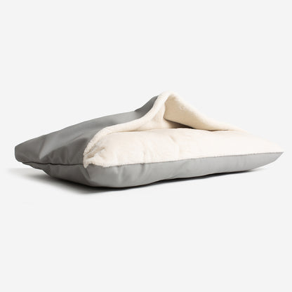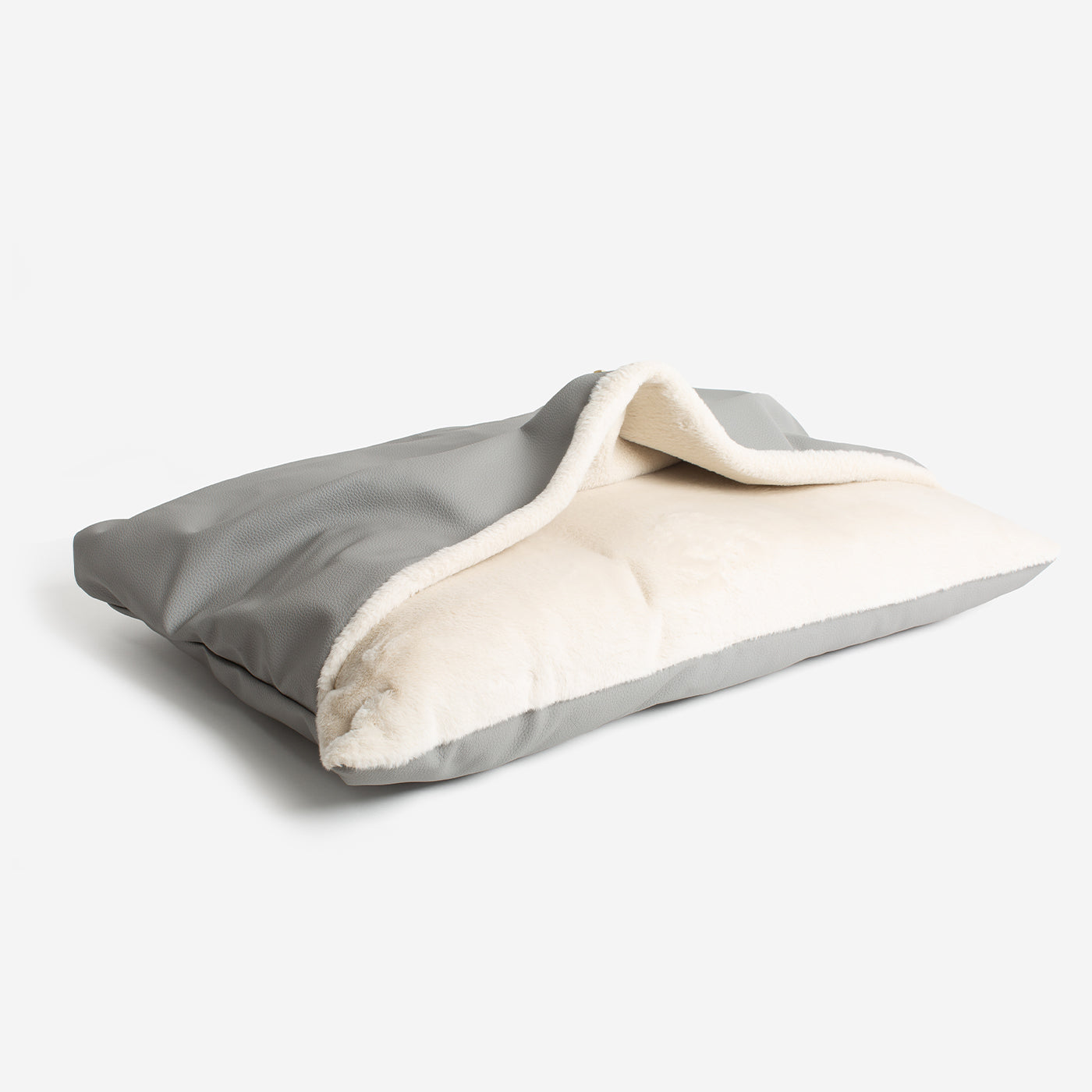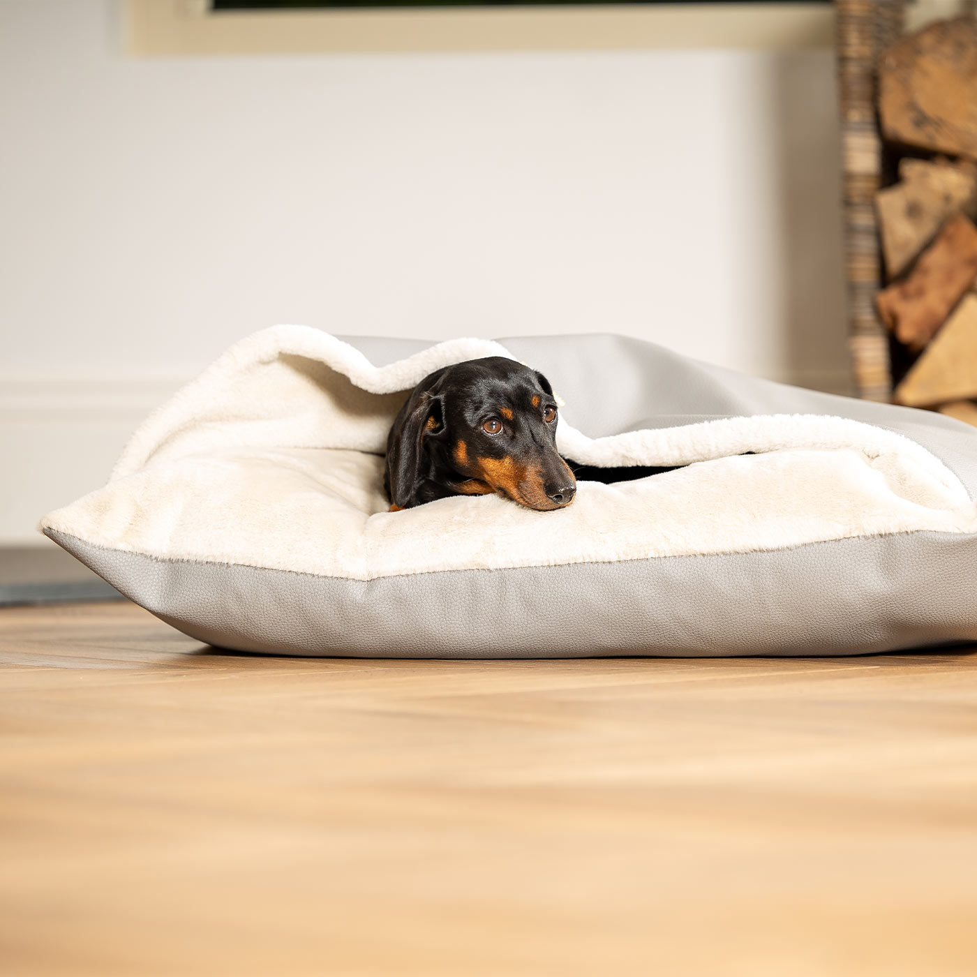Allow your pet to experience comfort like never before with the Lords & Labradors Sleepy Burrows Bed. Designed to create a luxurious retreat for your four-legged companion, the Granite Rhino Faux Leather exterior pairs with an ultra-soft inner plush fabric to offer a warm and snuggly cocoon. The removable cover ensures easy cleaning, while the Bleach cleanable outer provides durability and longevity. The Sleepy Burrows Bed can be used as a pillow or snuggled under the top hood, providing an exclusive space for your pet to relax. It also conveniently fits inside Lords & Labradors crates of matching sizes.