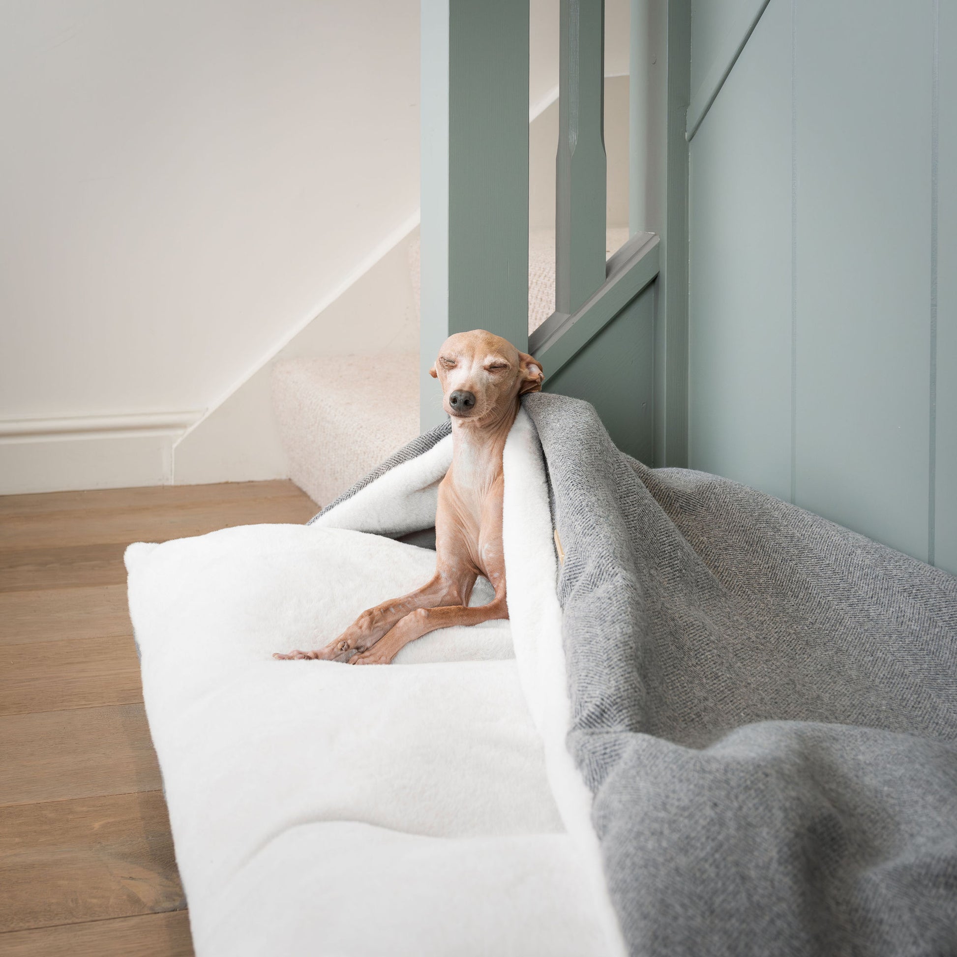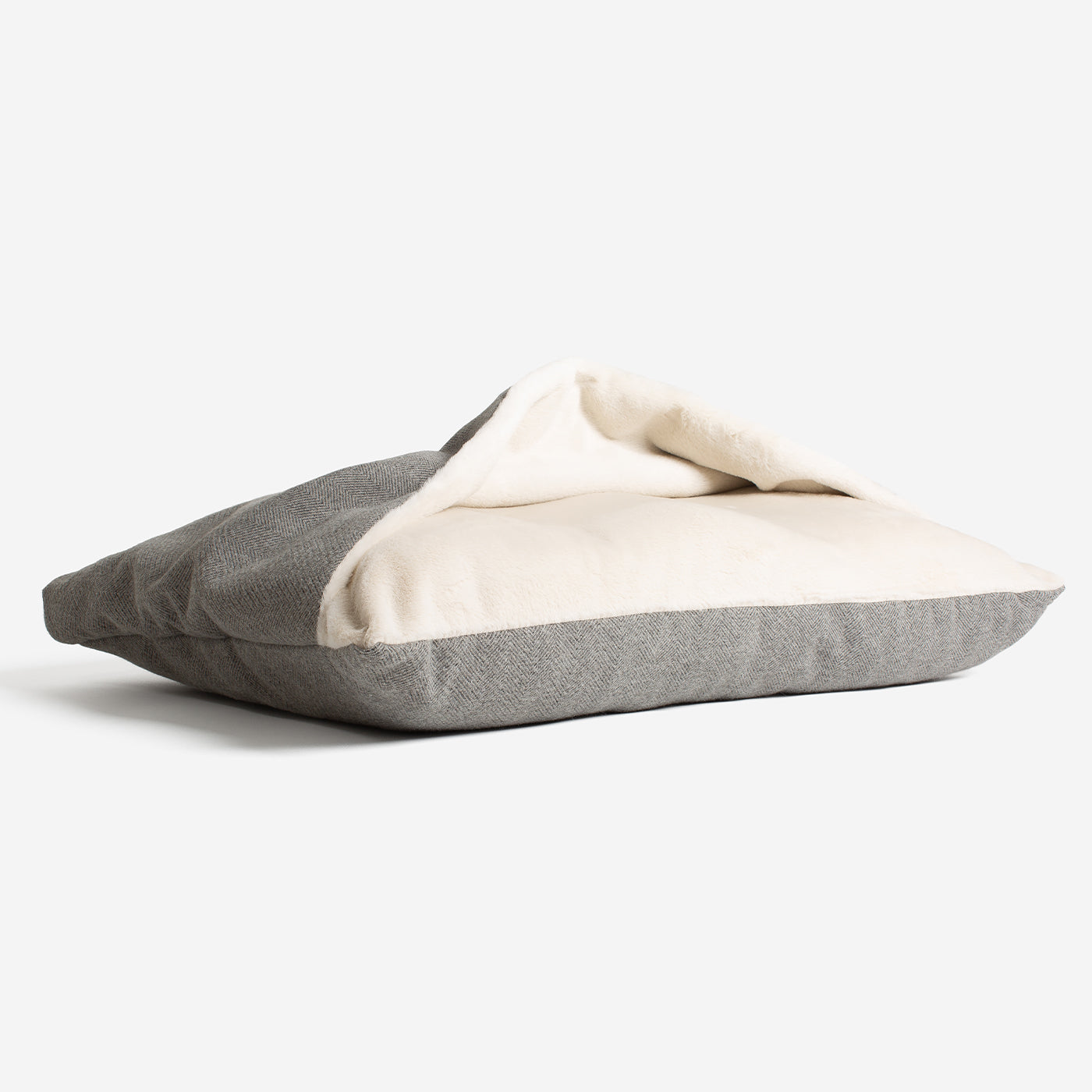 The Lords & Labradors Sleepy Burrows Bed in Pewter Herringbone is the perfect place for your pet to curl up for a cosy night's sleep. Crafted from a super soft inner plush fabric and a luxurious herringbone tweed outer fabric, your pet will enjoy the comfort and style of this snuggly bed. The removable cover makes it easy to clean, and the bed can even be placed in Lords & Labradors crates in matching sizes. As practical as it is stylish, this bed is machine washable at 30 degrees.
