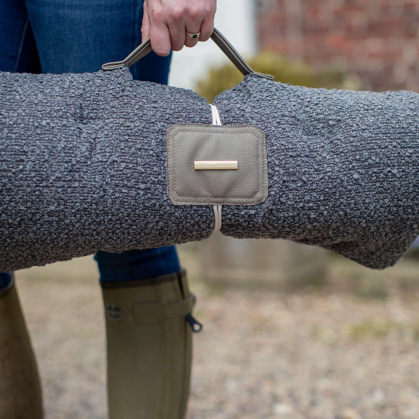 The Lords & Labradors Bouclé Travel Mat is expertly crafted with hardwearing Bouclé fabrics to provide a durable and comfortable solution for life on the go. Roll up the mat for easy storage, or use the convenient carry handle to take it with you wherever you go. Can be used as a seat cover, boot mat or travel bed in two sizes and three colours.