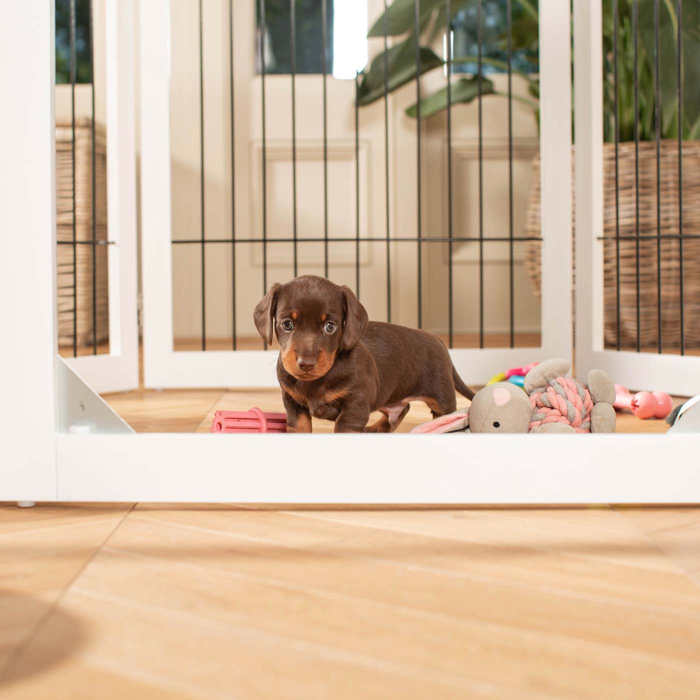 ![[color:white] Ensure The Ultimate Puppy Safety with Our Heavy Duty Wooden Puppy Play Pen in Grey or white, Crafted to Take Your Pet Right Through Maturity! Powder Coated to Be Extra Hardwearing! 6 panels that are 80.5cm high! Available To Now at Lords & Labradors](http://www.lordsandlabradors.co.uk/cdn/shop/products/lords-labradors-white-wooden-puppy-pen-close-up-white.jpg?v=1687795611&width=1445)