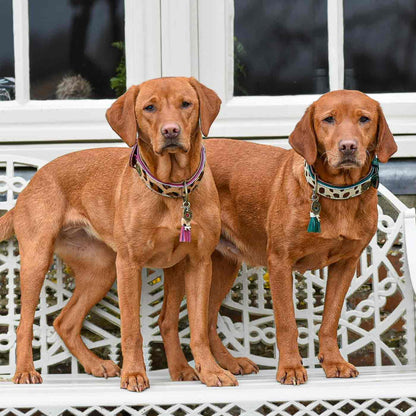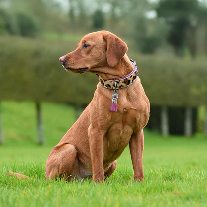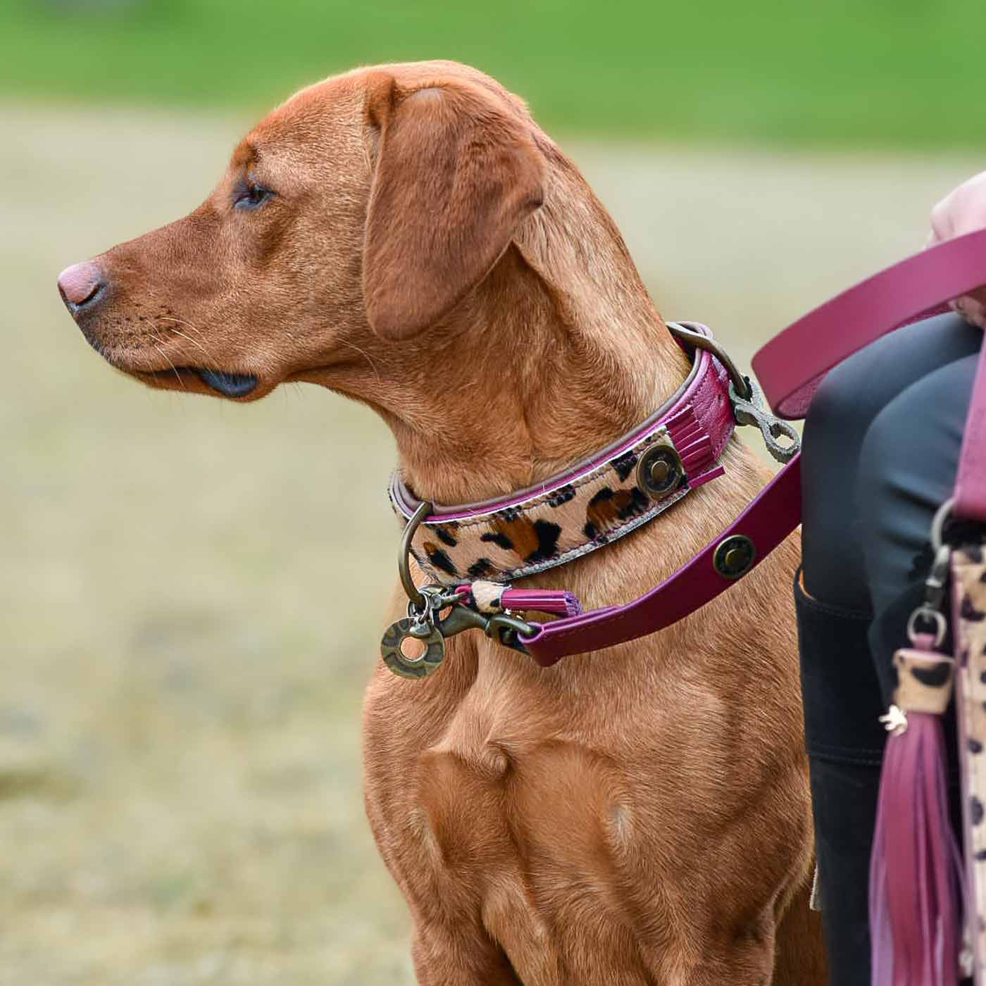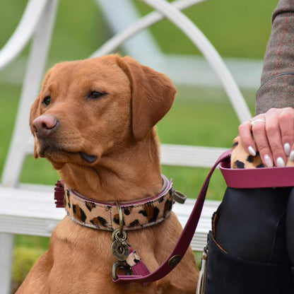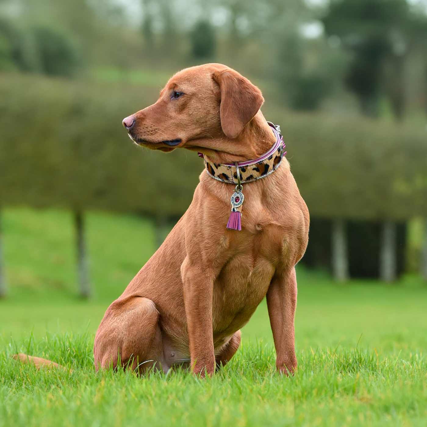 The Lou Lou Dog Collar by DWAM is a beautifully crafted, animal print design collar with pink accents. Made with short fur and detailed, extra-strong stitching, it's both stylish and durable. The sturdy brass hardware and easy loop attachment make it practical too. Available in 7 sizes, from Chihuahuas to Great Danes, complete the set with the matching lead.