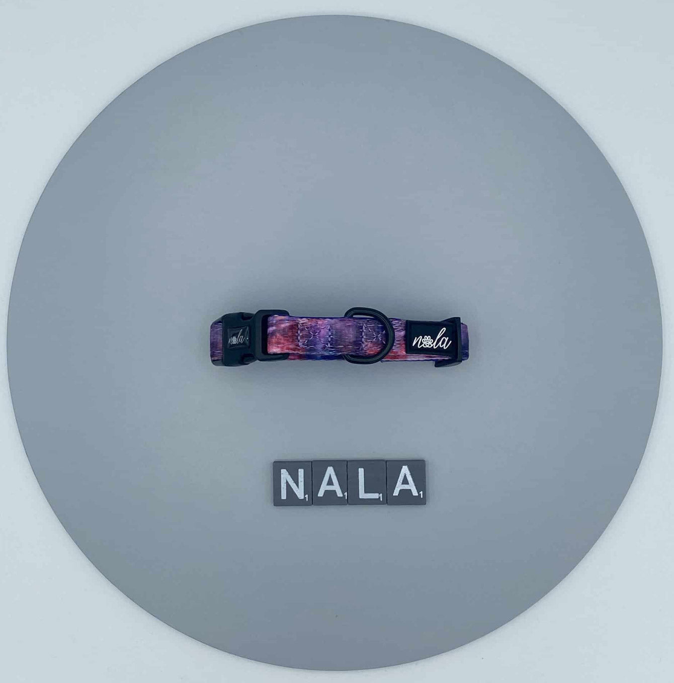 Beautiful purple collar, part of the 'Nala Loves' Collection.